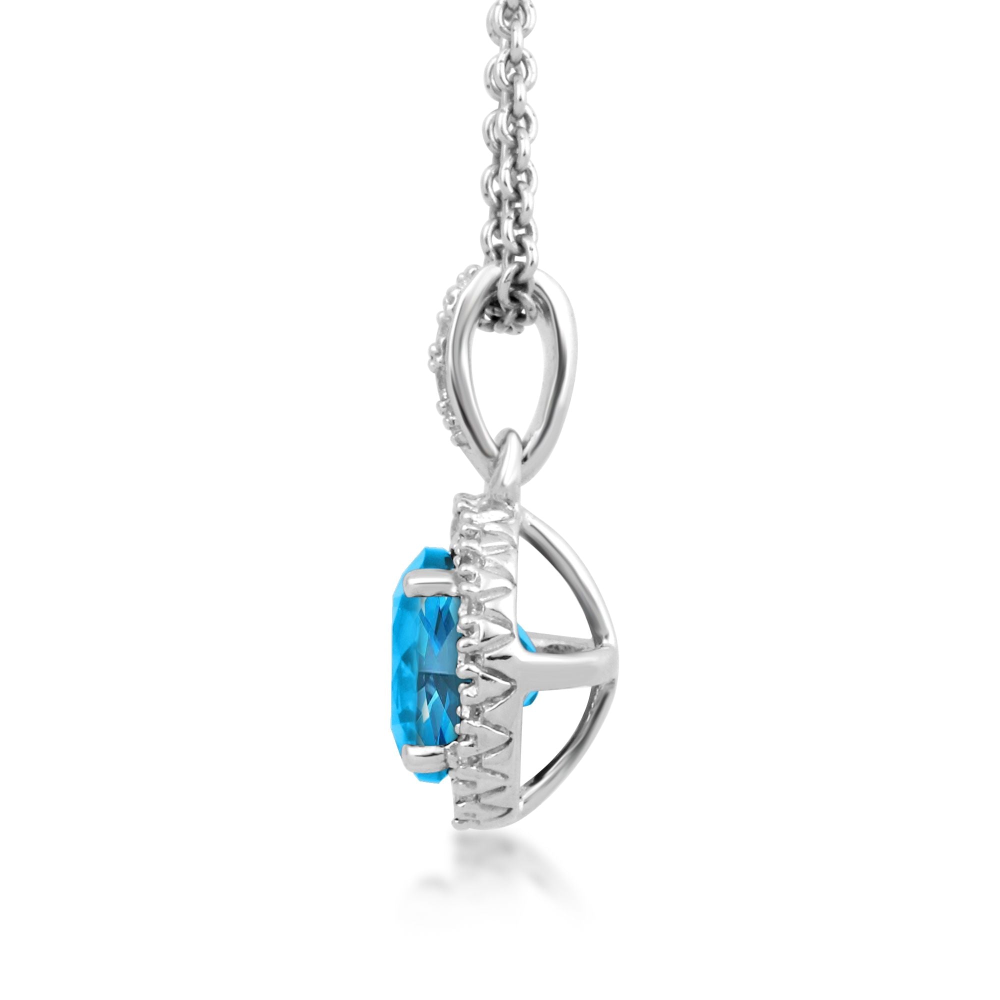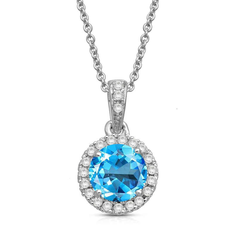 • Sterling Silver With Swiss Blue Topaz and Created White Sapphire Halo Pendant Necklace
