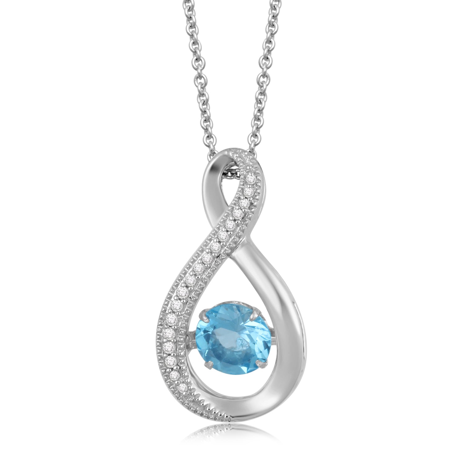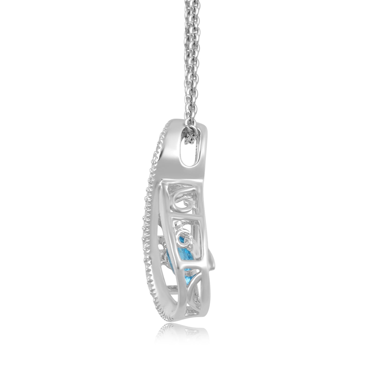 • Sterling Silver With Swiss Blue Topaz and Round Created White Sapphire Pendant Necklace
