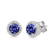 Jewelili Sterling Silver With Tanzanite and Cubic Zirconia Halo Stud Earrings