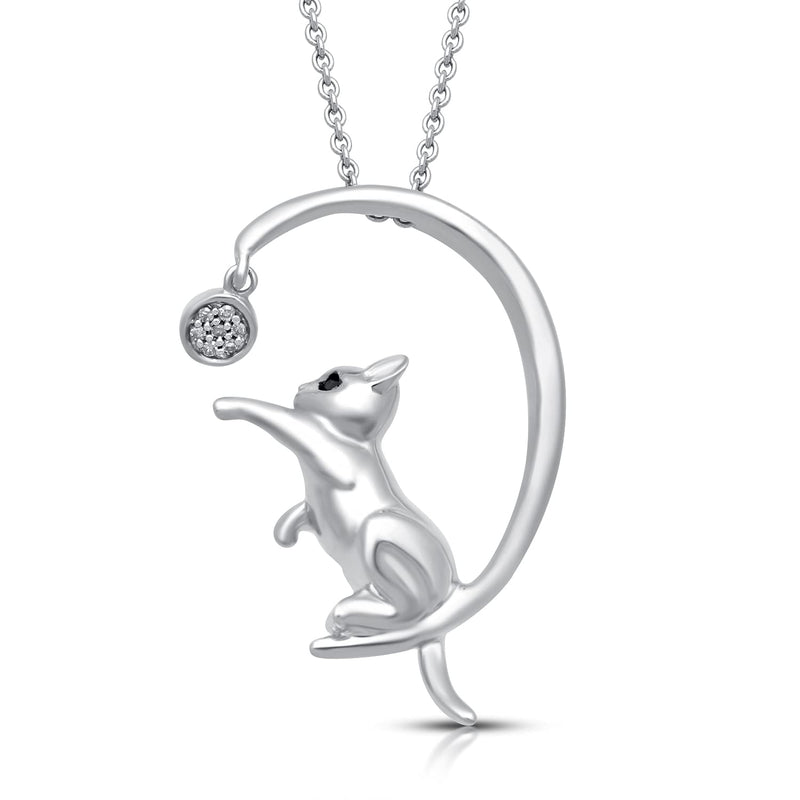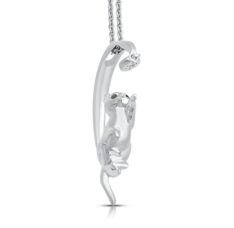 Jewelili Sterling Silver With Treated Black and Natural White Diamonds Cat Pendant Necklace