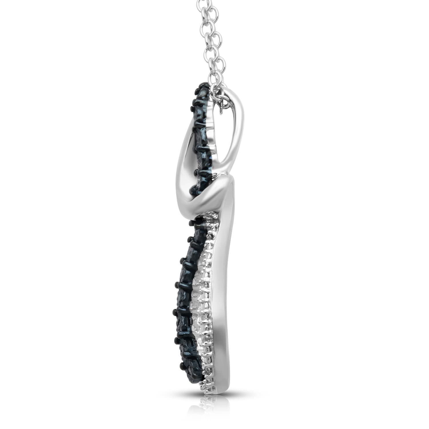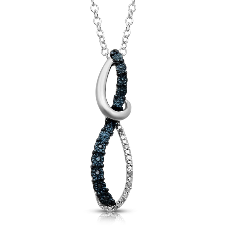 Jewelili Sterling Silver With Treated Blue and Natural White Diamonds Twisted Pendant Necklace