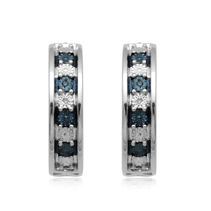 • Sterling Silver With Treated Blue and White Natural Diamond Hoop Earrings