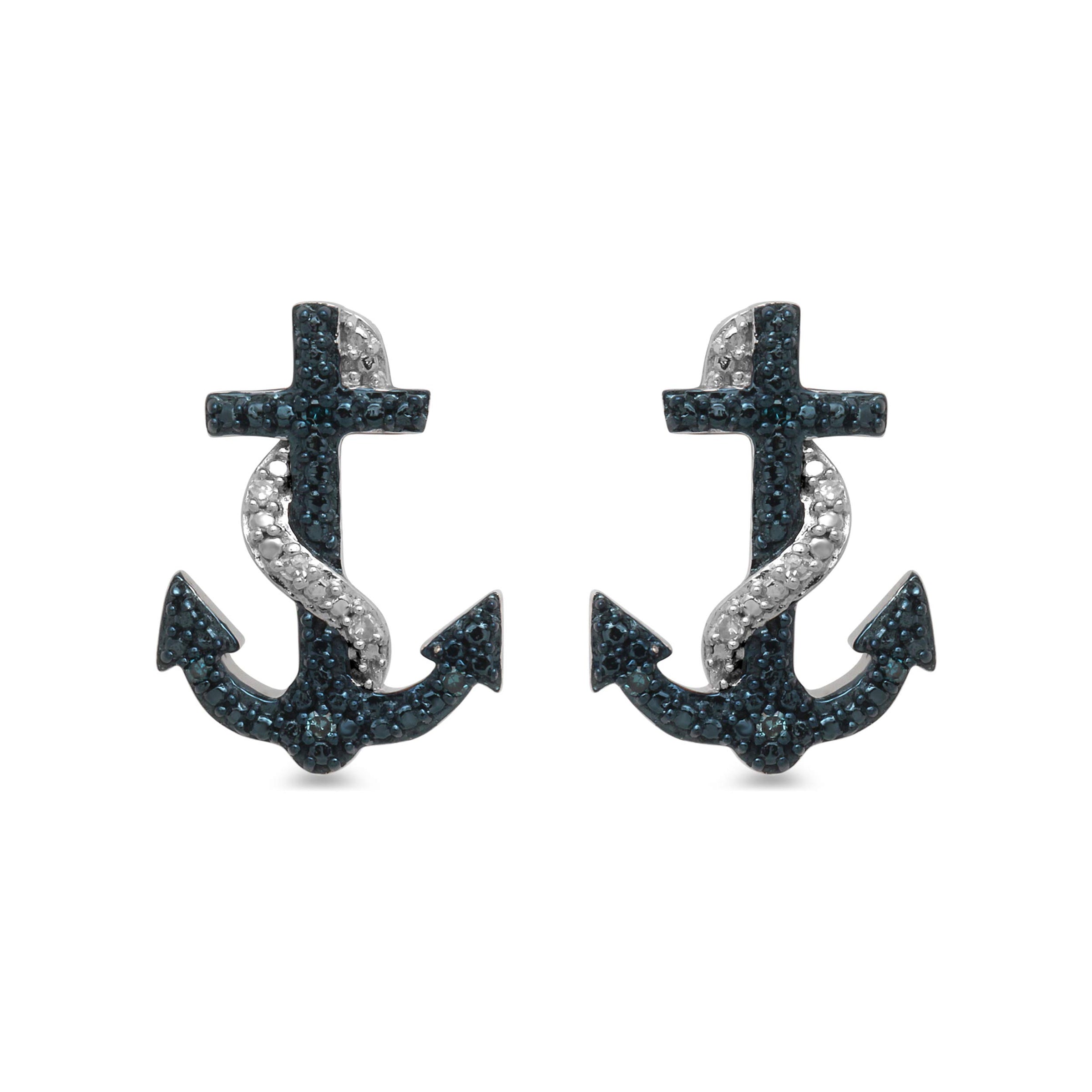 Details: Sterling Silver With Treated Blue and White Natural Diamonds Anchor Stud Earrings