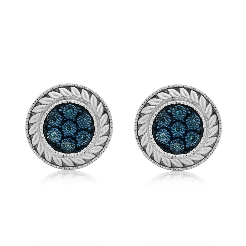 Jewelili Sterling Silver With Treated Blue Diamond Accent Stud Earrings