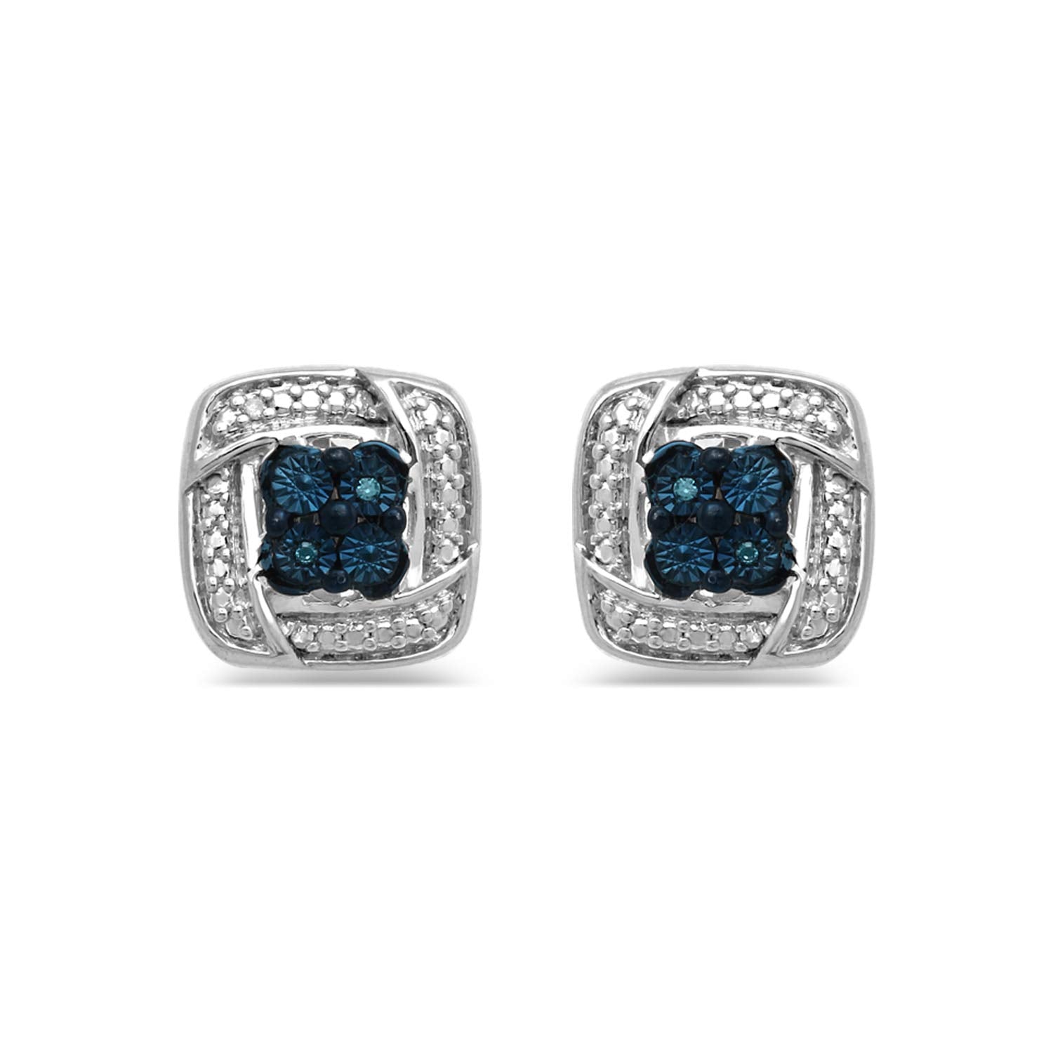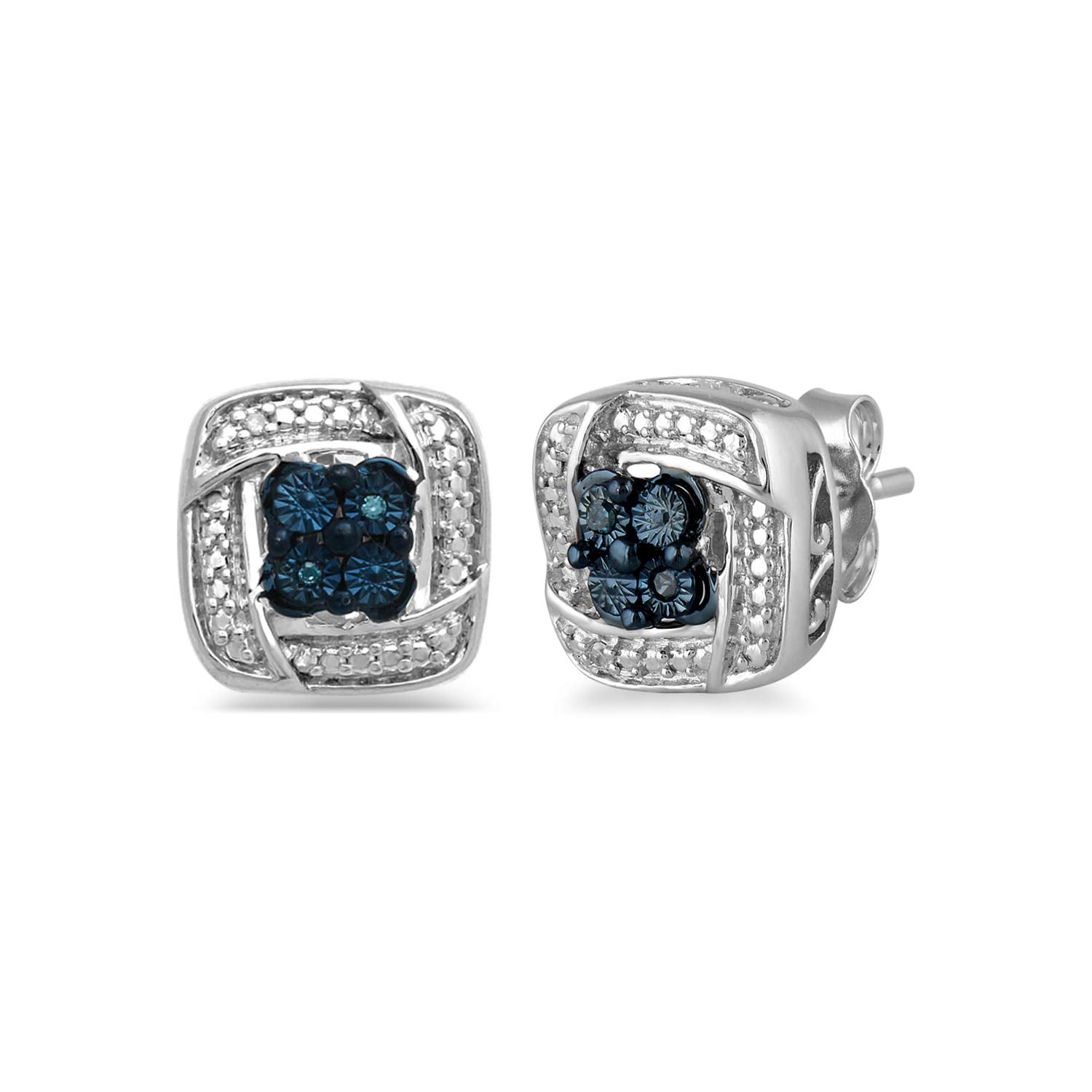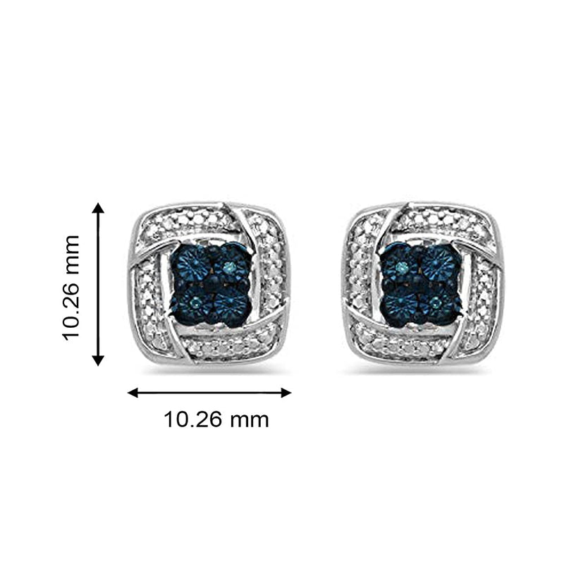 Jewelili Sterling Silver With Treated Blue Diamonds and White Natural Diamonds Stud Earrings
