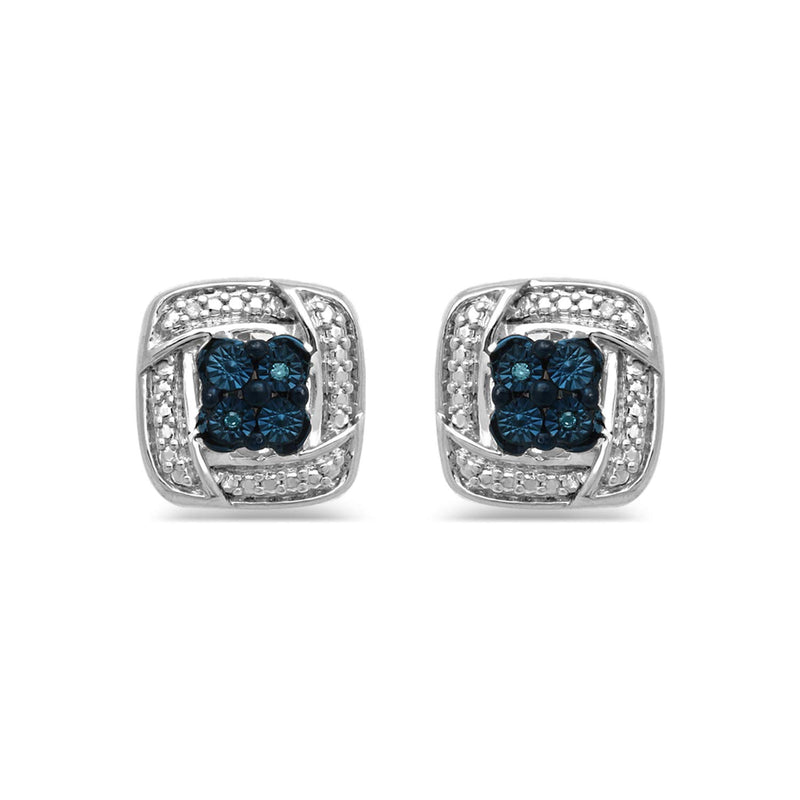 • Sterling Silver With Treated Blue Diamonds and White Natural Diamonds Stud Earrings