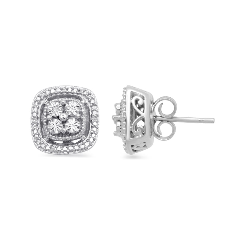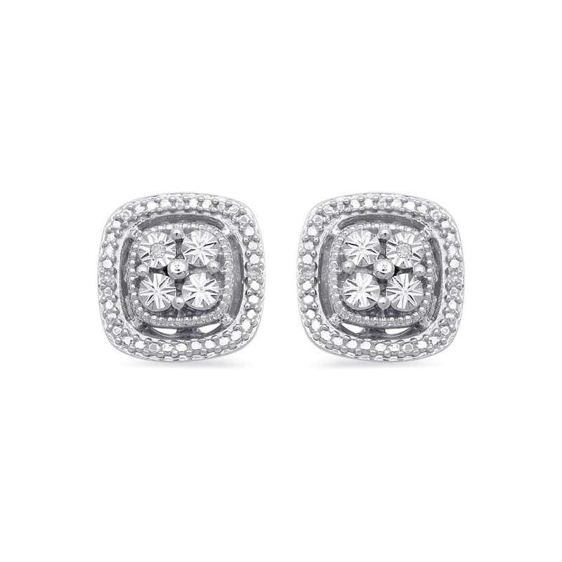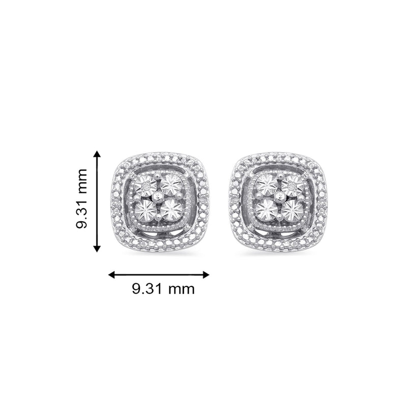 • Sterling Silver  With White Diamond Accent Square Shape Stud Earrings