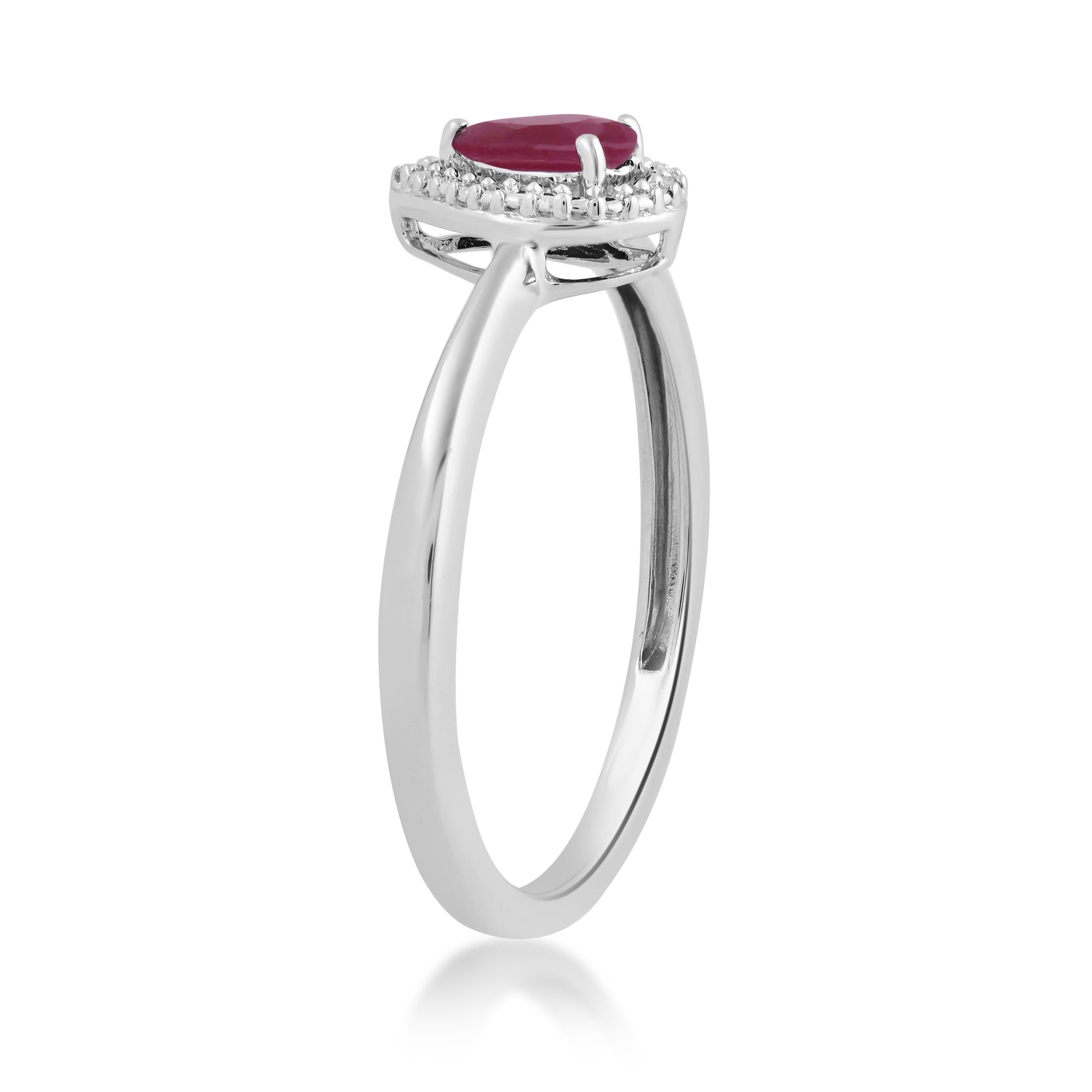 • Sterling Silver With White Diamonds and Pear Cut Ruby Teardrop Ring
