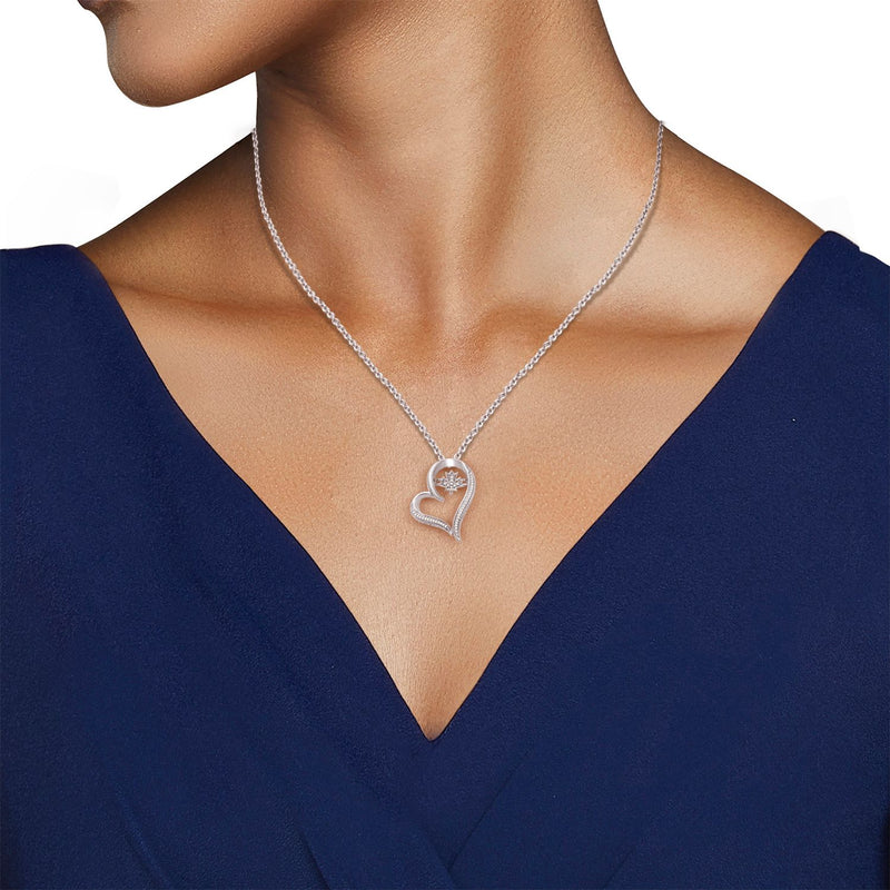 • Sterling Silver With White Diamonds Tilted Heart Pendant Necklace