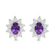 • Load image into Gallery viewer, Jewelili Sterling Sliver 6x4 MM Oval Created Amethyst and 1/20 Cttw Natural White Round Diamond Cluster Stud Earrings