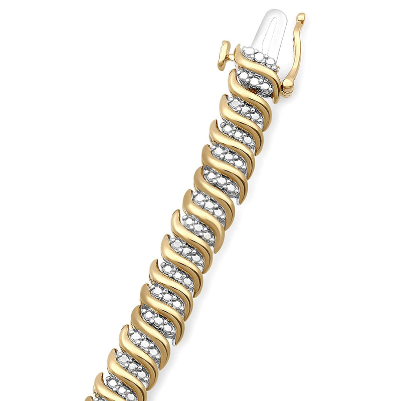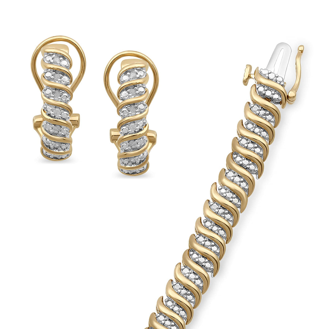 • 14K Yellow Gold Over Brass 1/3 Cttw Natural Round White Diamond Earrings and Bracelet Box Set