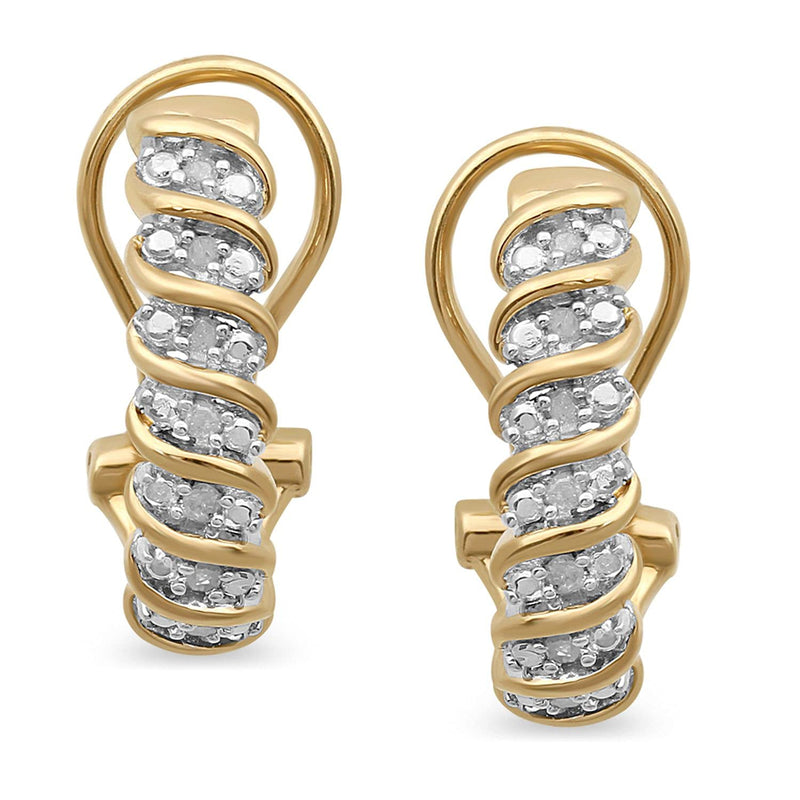 Jewelili 14K Yellow Gold Over Brass 1/3 CTTW Natural Round White Diamonds Earrings and Bracelet Box Set
