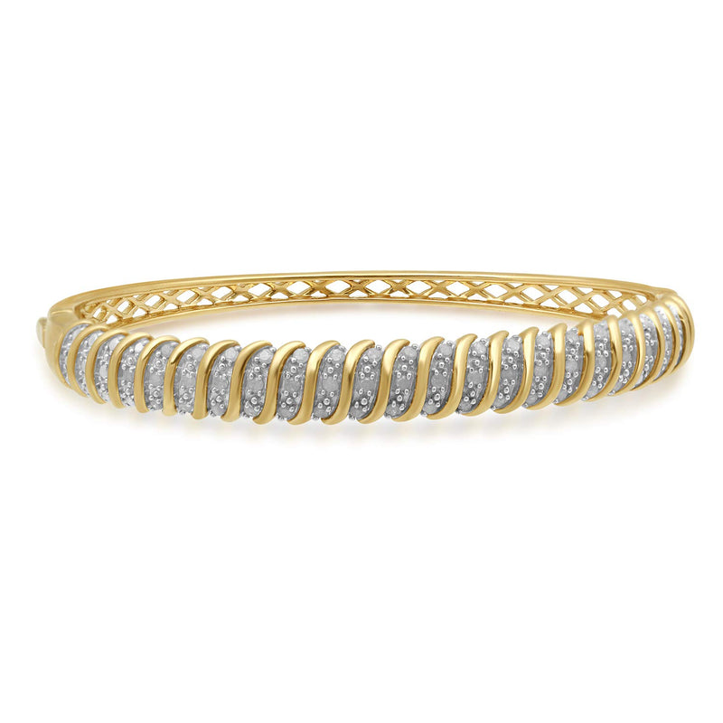 • Yellow Gold Over Brass 1 Cttw Natural White Round Diamonds Bangle