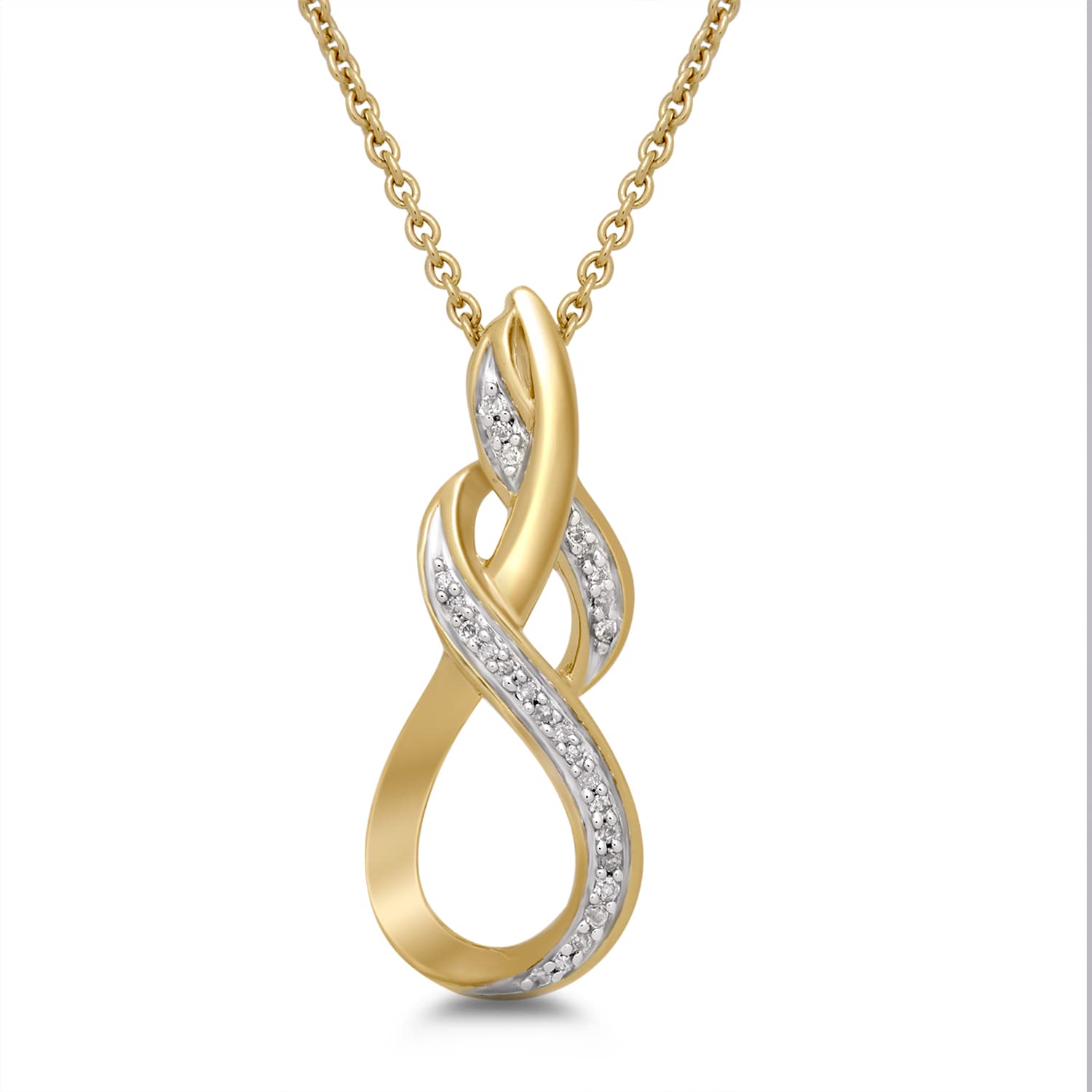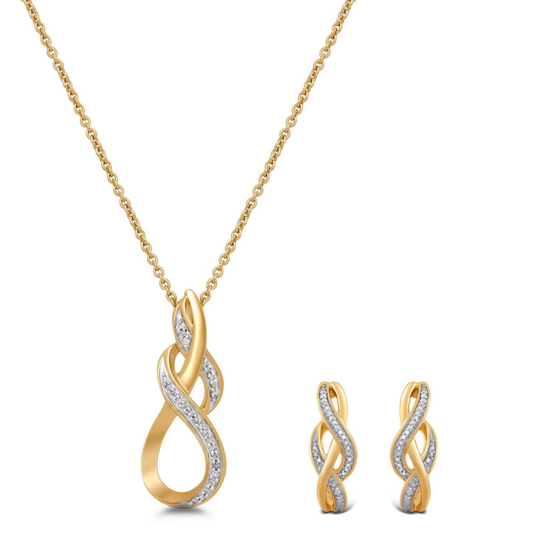 • Yellow Gold Over Sterling Silver With 1/10 Cttw Natural White Round Diamonds Infinity Pendant Necklace and Stud Earrings Jewelry Set