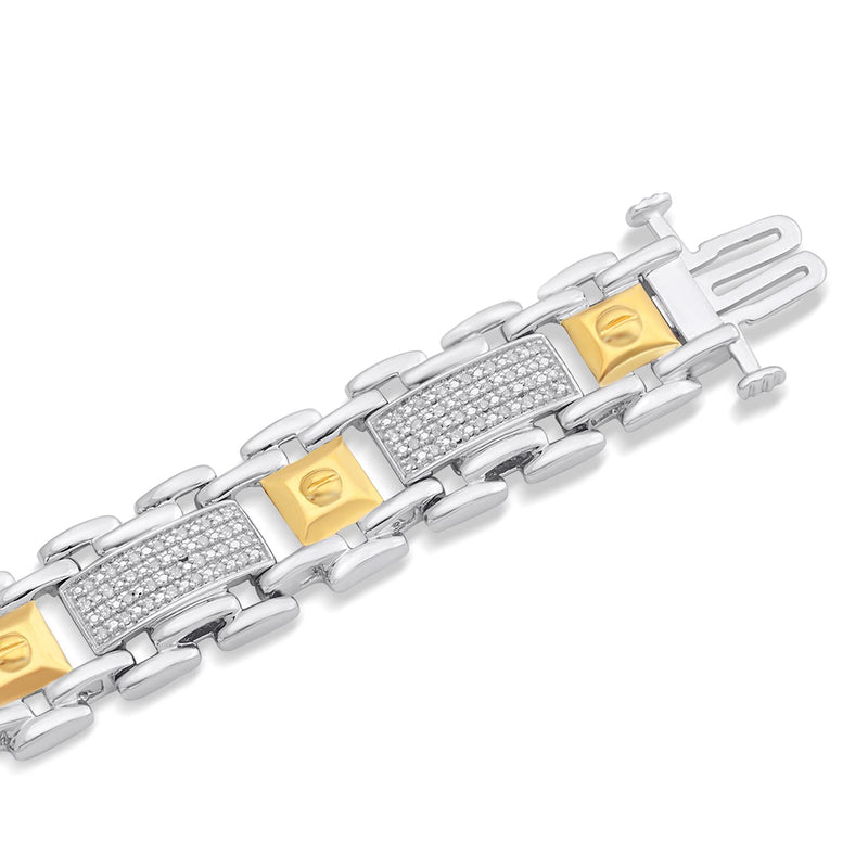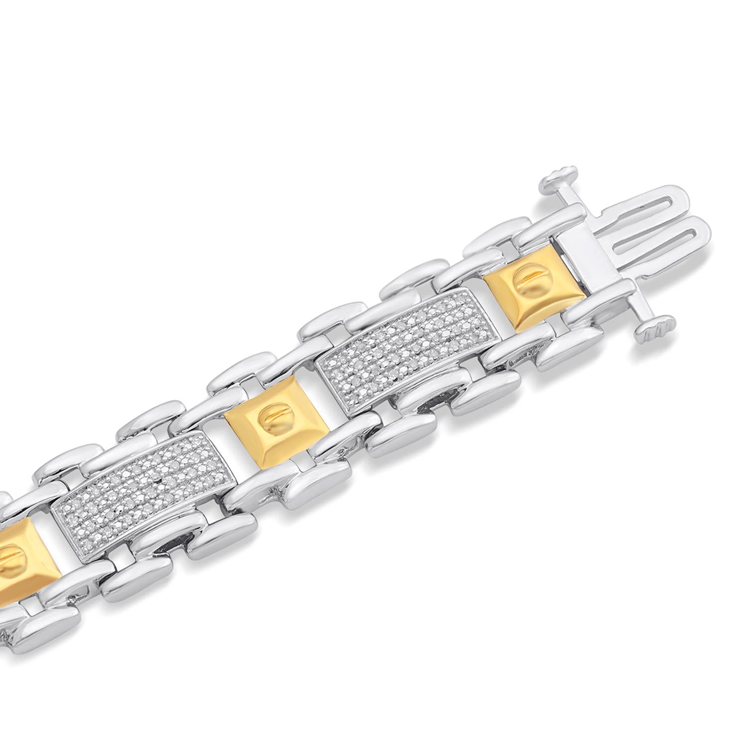 • Load and play video in Gallery viewer, Jewelili 14K Yellow Gold Over Sterling Silver with 1/2 CTTW Natural White Round Diamonds Mens Link Bracelet, 8.5"