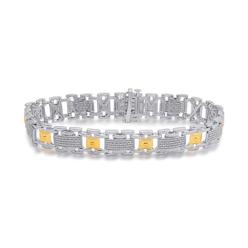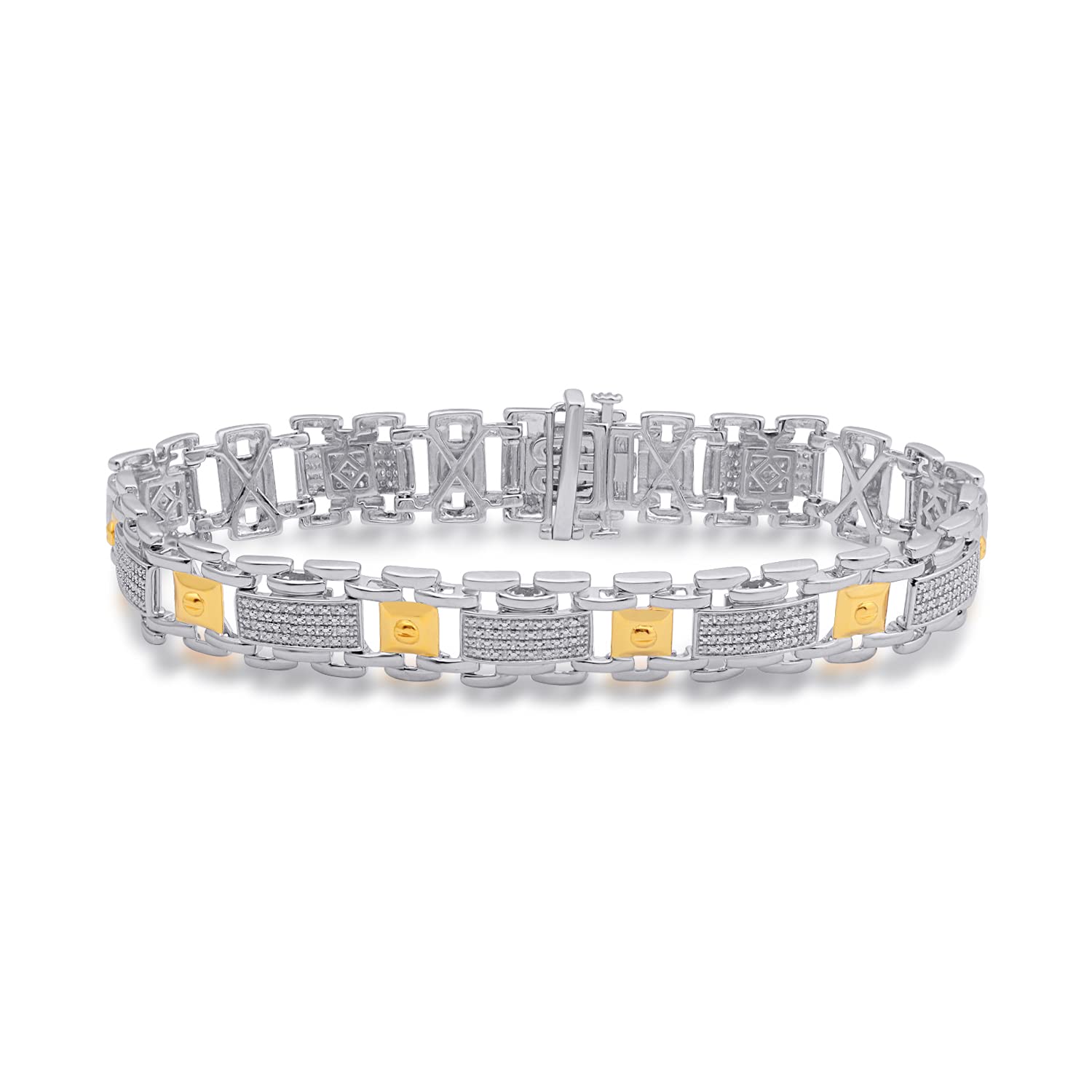 Jewelili 14K Yellow Gold Over Sterling Silver with 1/2 CTTW Natural White Round Diamonds Mens Link Bracelet, 8.5"