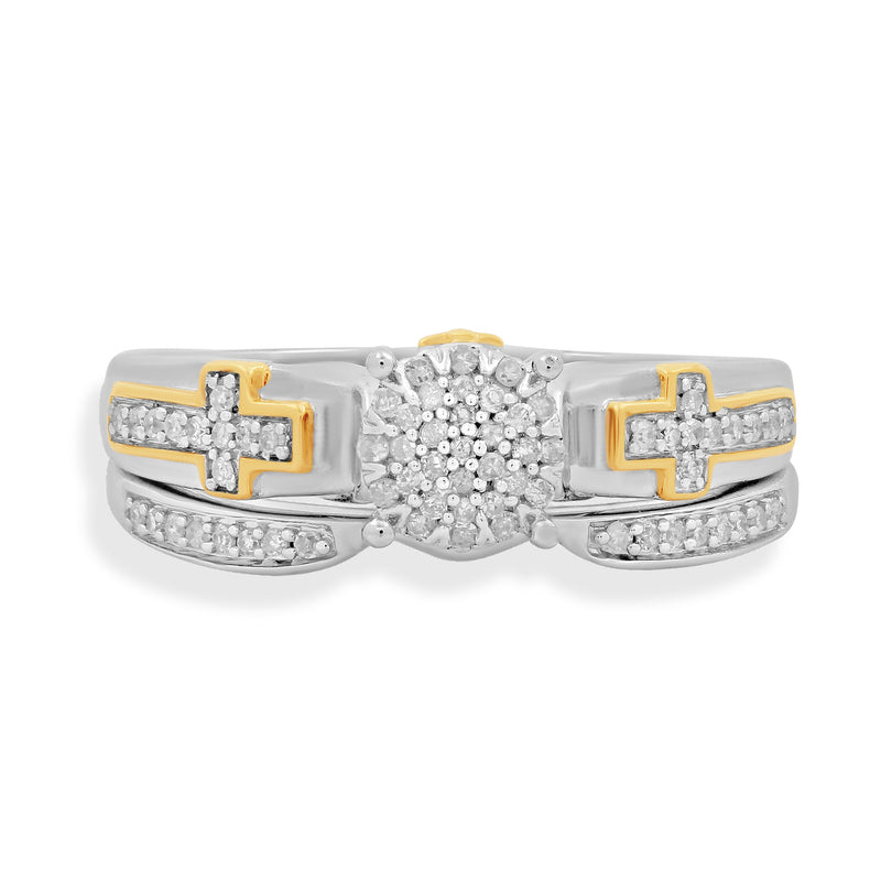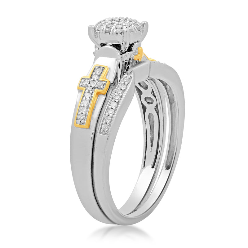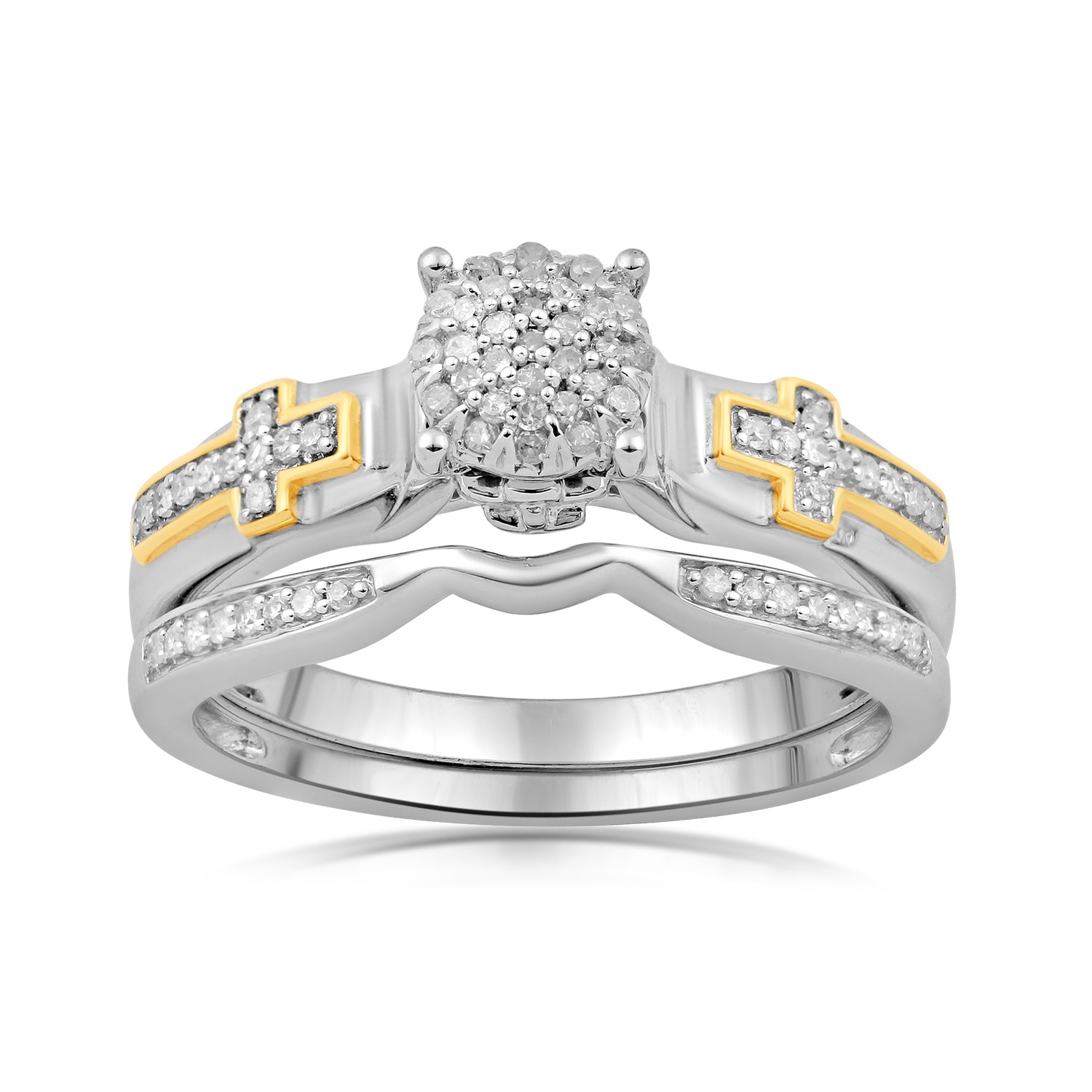 Jewelili Yellow Gold Over Sterling Silver With 1/5 CTTW Natural White Round Diamonds Bridal Set