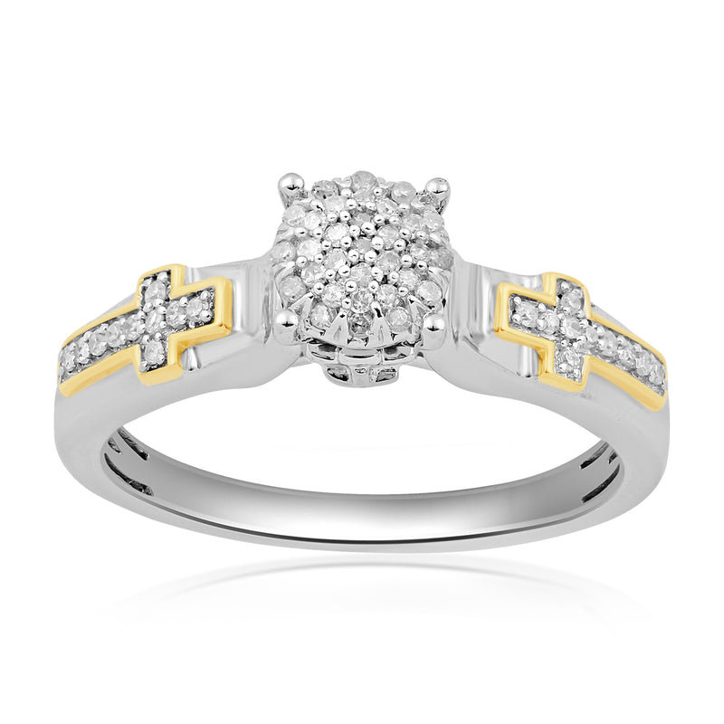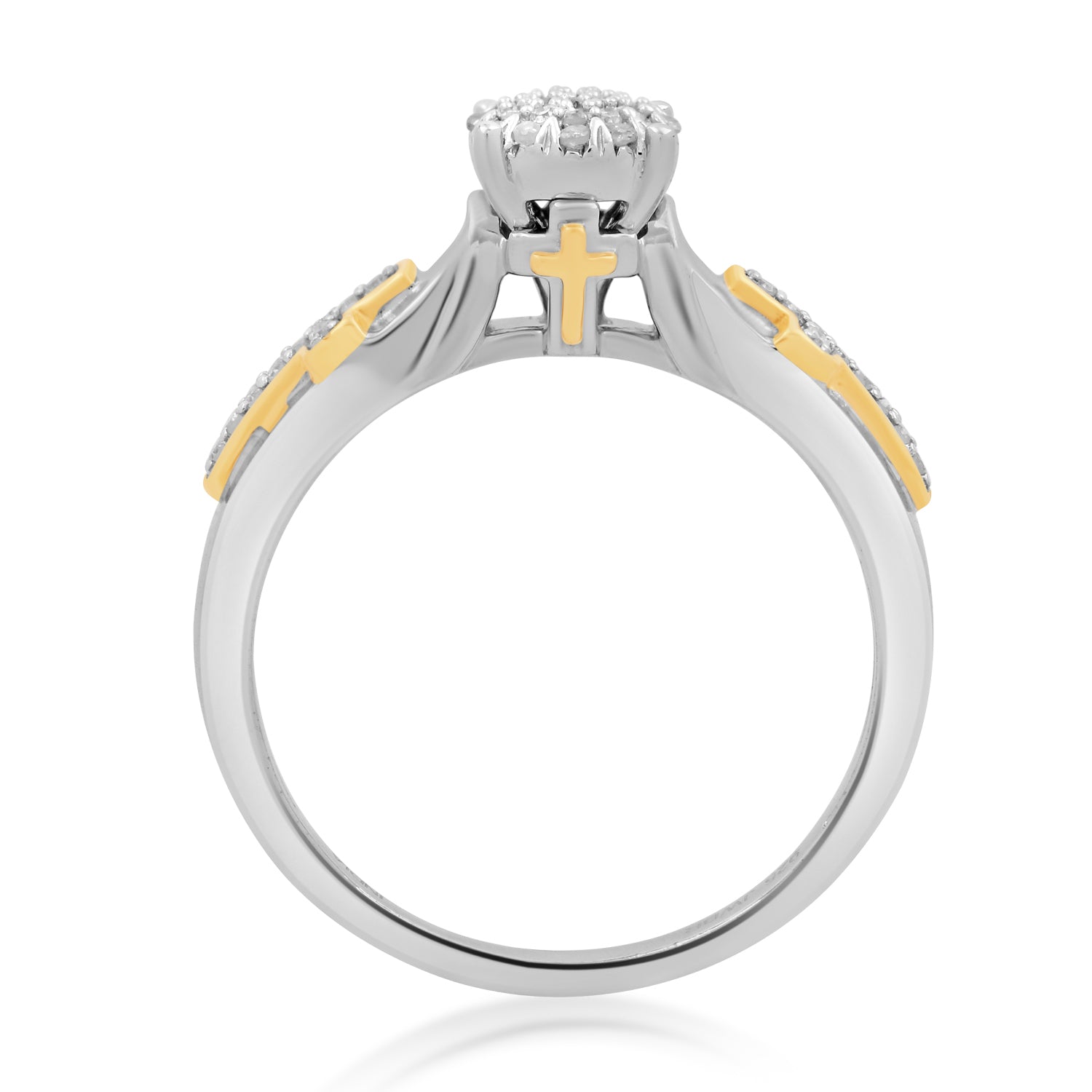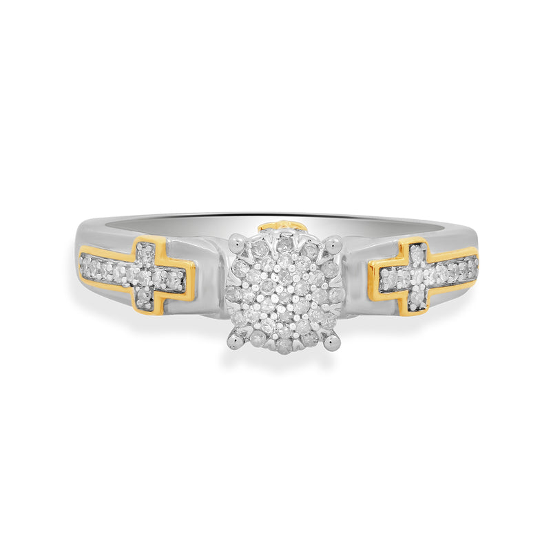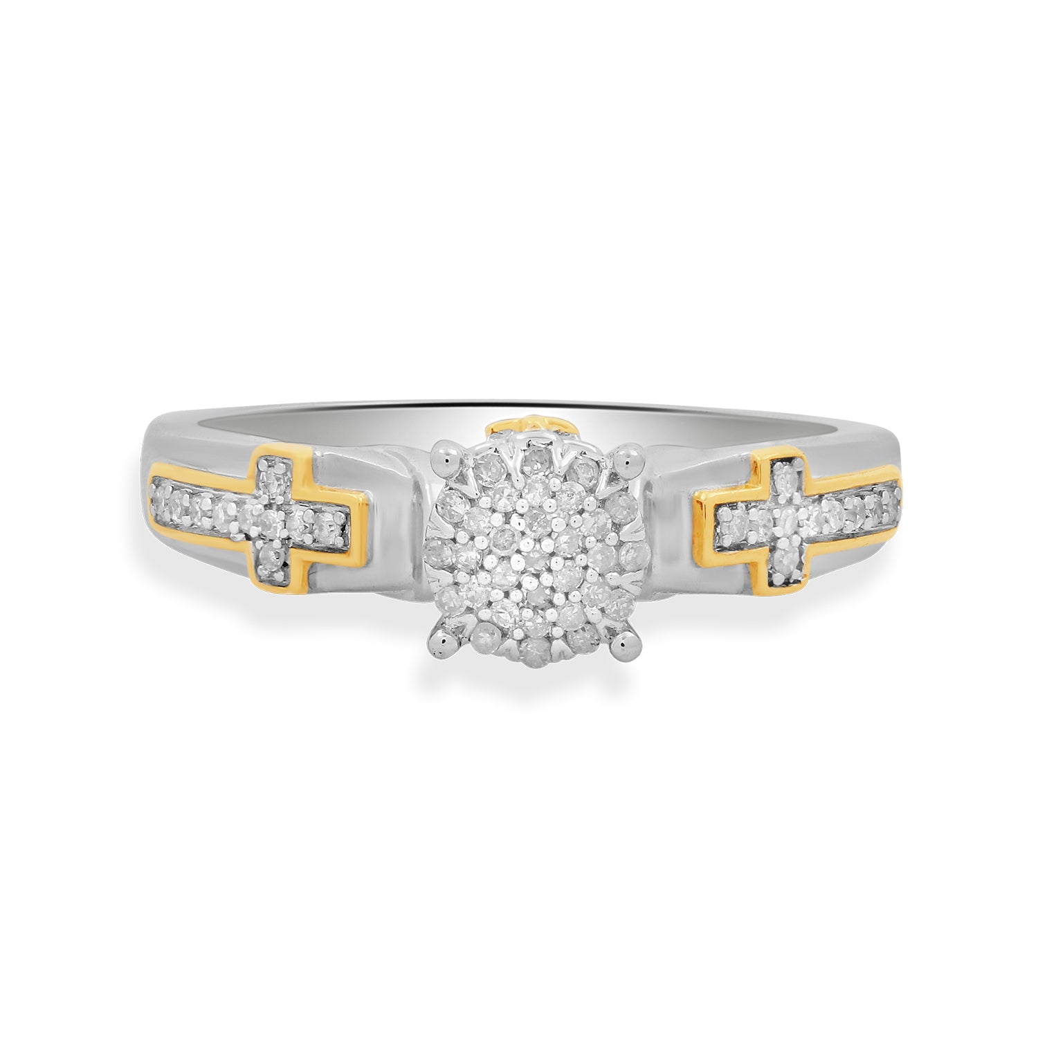 • Bridal Engagement Ring in Yellow Gold Over Sterling Silver with 1/5 Cttw Natural White Round Diamond