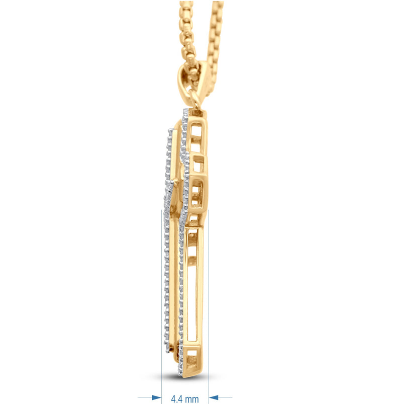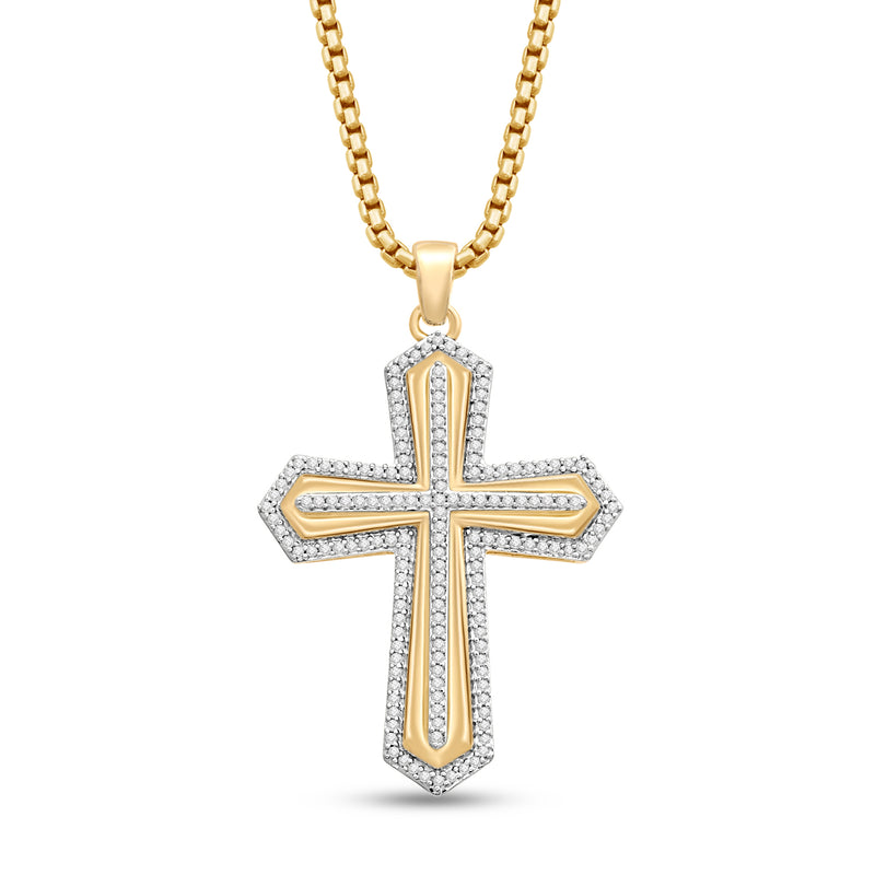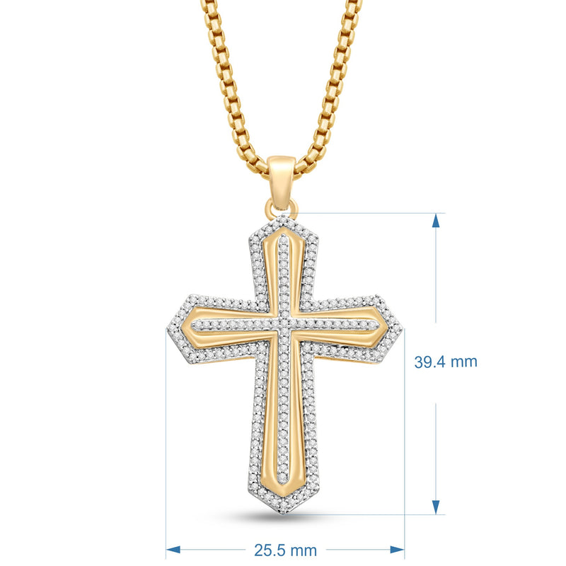 Jewelili 14K Yellow Gold Over Sterling Silver With 1/2 CTTW Natural White Round Diamonds Cross Men's Pendant Necklace