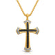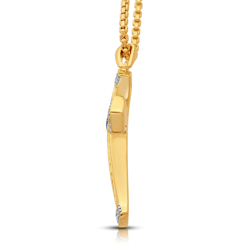 Jewelili 14K Yellow Gold over Sterling Silver Black Rhodium With 1/2 CTTW Treated Black Diamonds and Natural White Round Diamonds Men's Cross Pendant Necklace