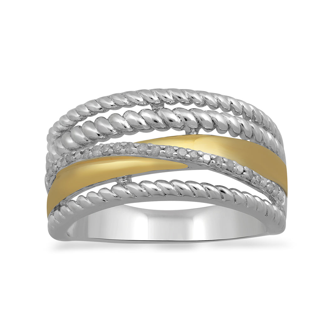 Jewelili 14K Yellow Gold Over Sterling Silver with 0.10 CTTW Natural Round White Diamonds Ring