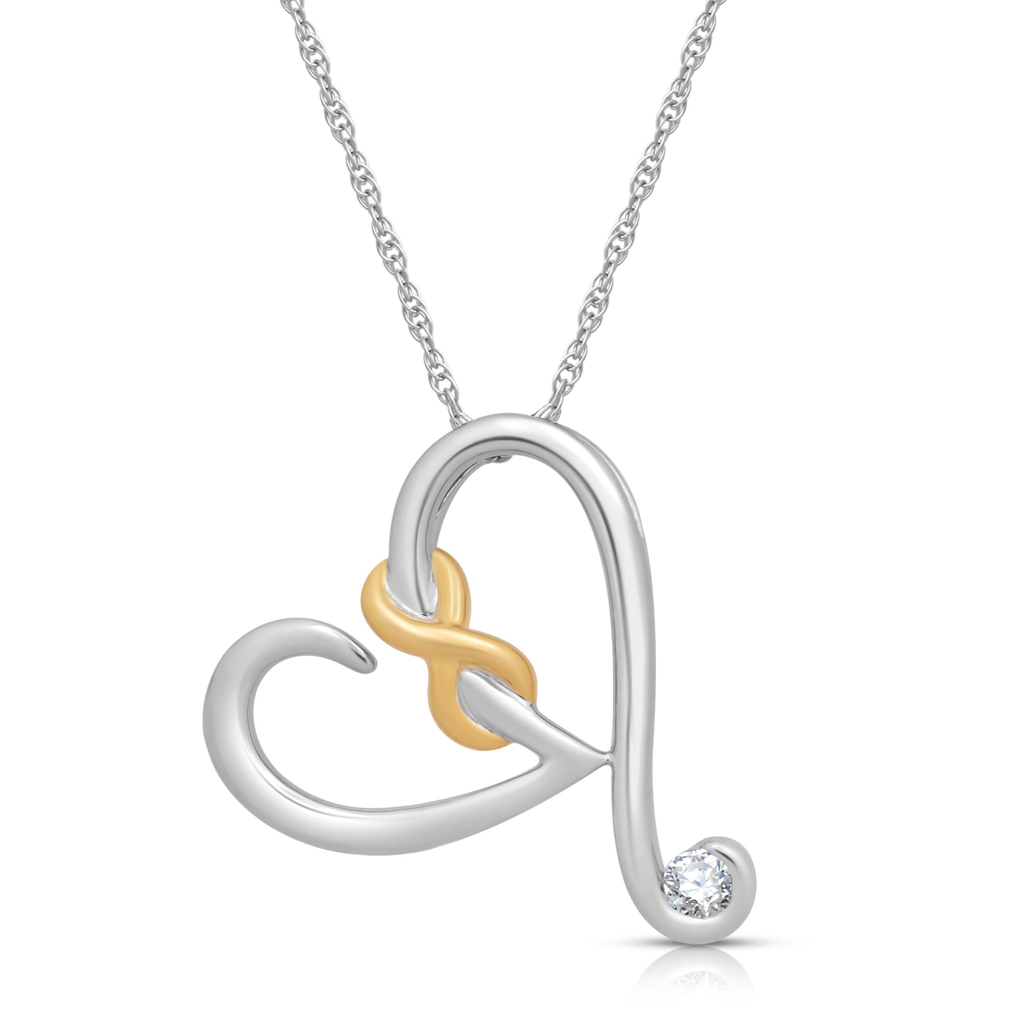 • Load image into Gallery viewer, Jewelili Heart Pendant Necklace with Natural White Round Diamonds in 14K Yellow Gold over Sterling Silver 1/10 CTTW View 1