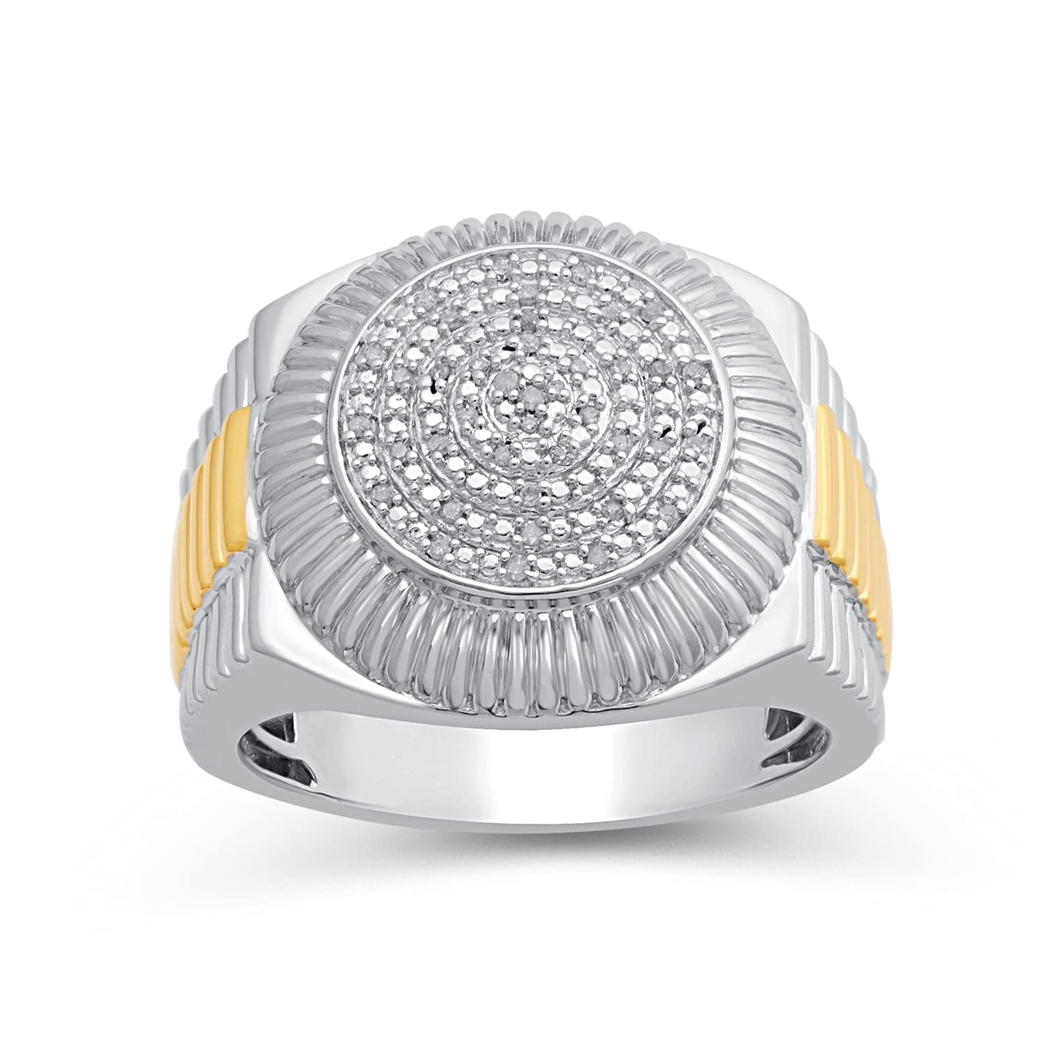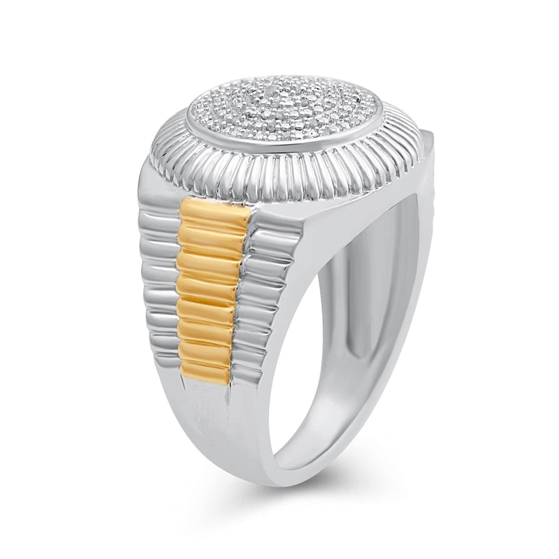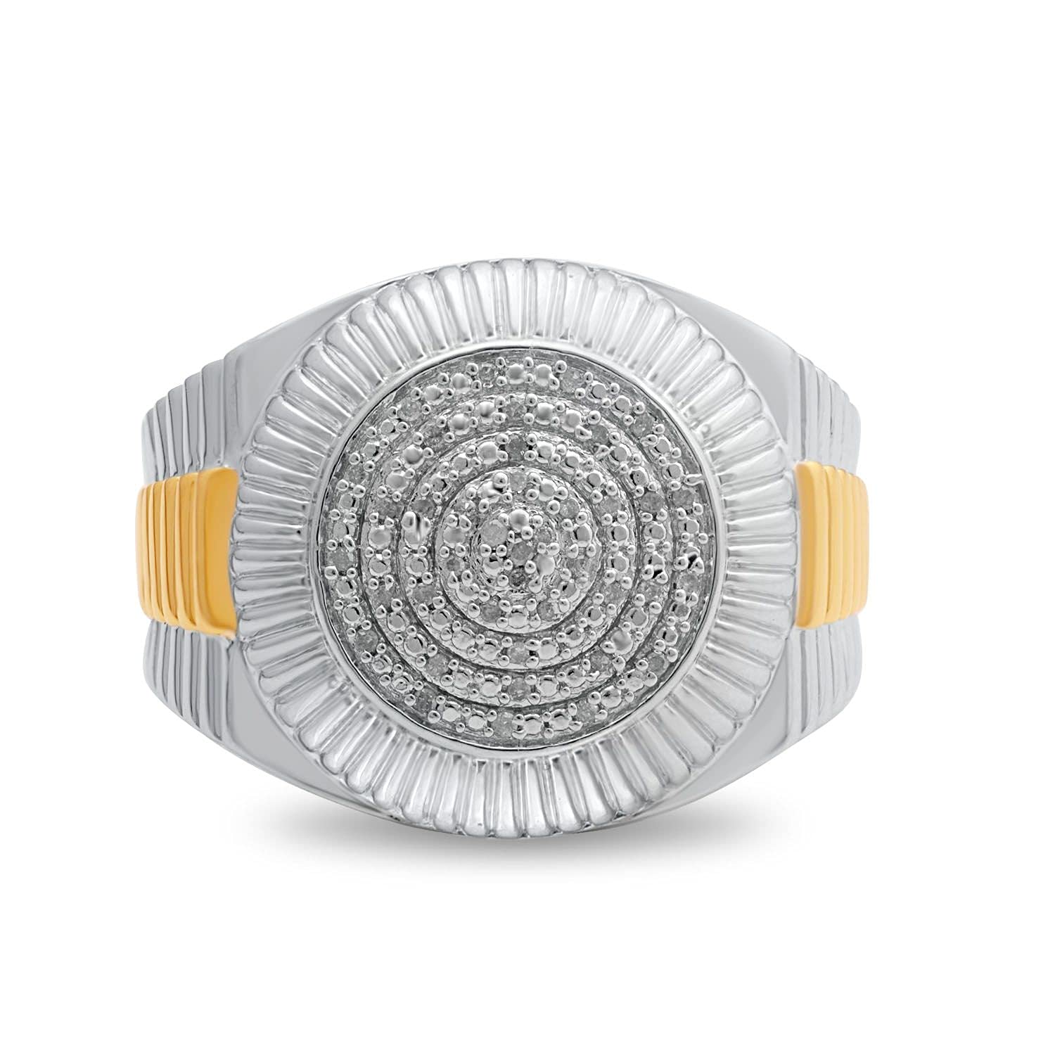 • Yellow Gold Over Sterling Silver With 1/10 Cttw Natural White Round Diamond Men's Ring