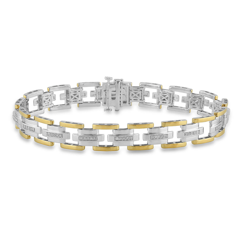 • Yellow Gold Over Sterling Silver with 1/2 Cttw Natural White Round Diamond Link Bracelet, 8.5"