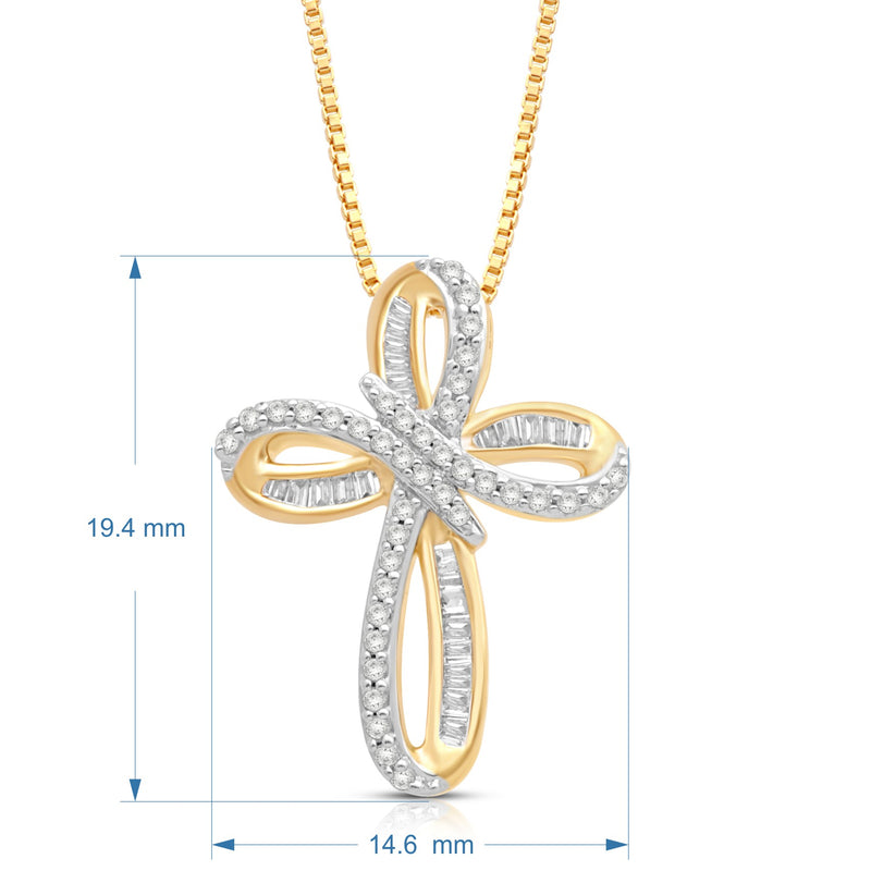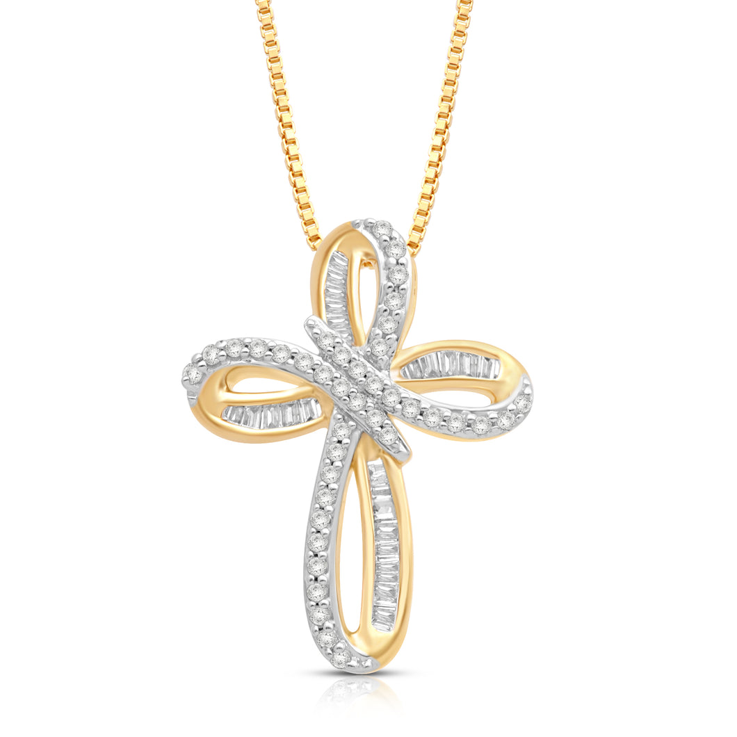 • Yellow Gold Over Sterling Silver With 1/4 Cttw Natural White Diamond Cross Pendant Necklace