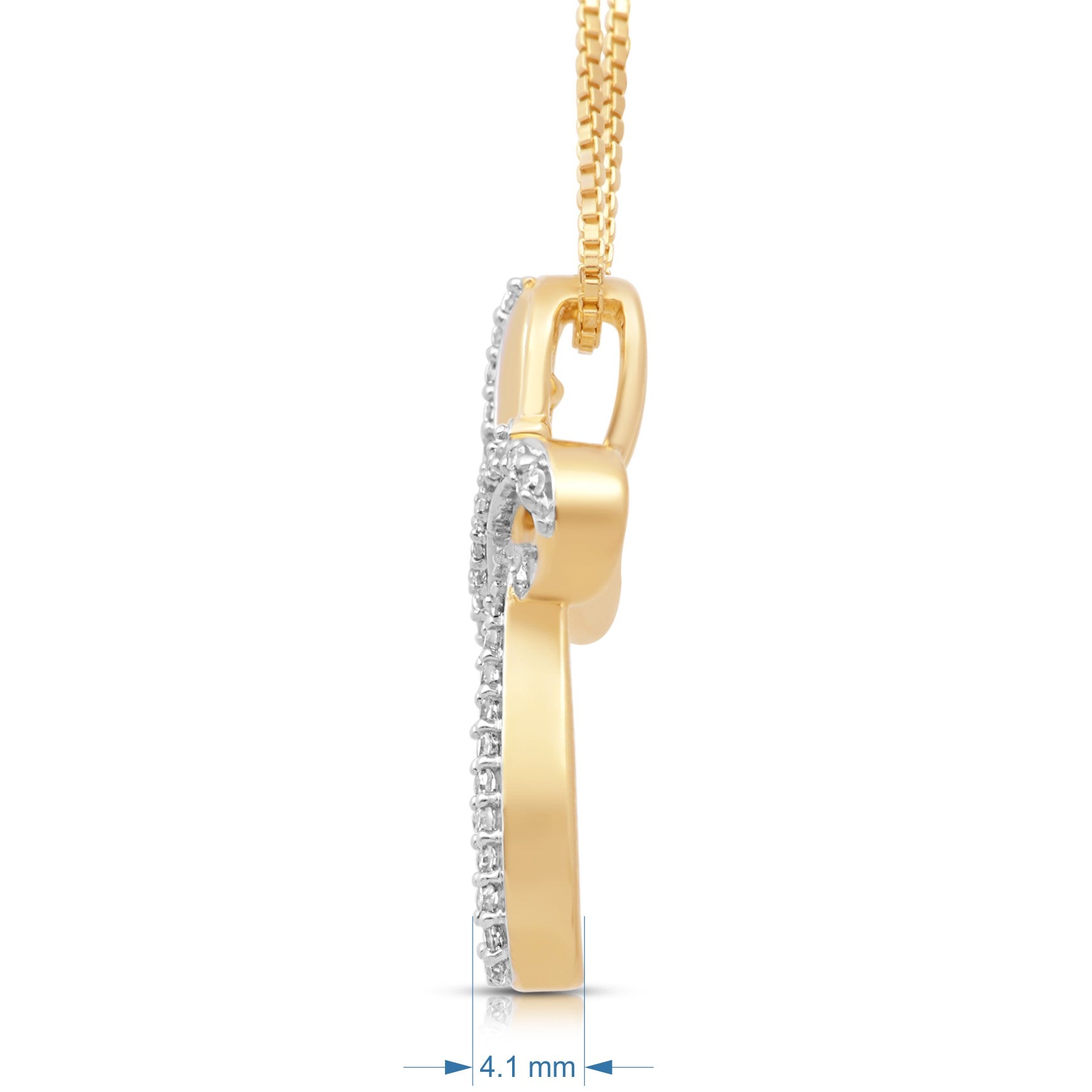 • Load image into Gallery viewer, Jewelili Cross Pendant Necklace with Natural White Diamond in Yellow Gold over Sterling Silver 1/4 CTTW View 3