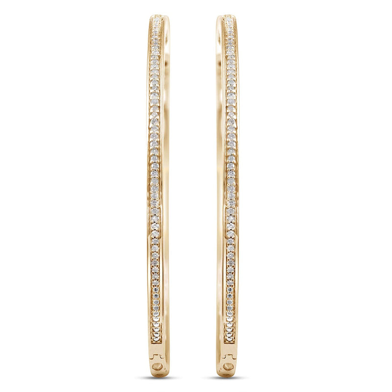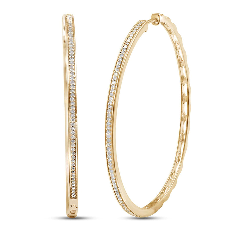 • Yellow Gold Over Sterling Silver With 1/4 Cttw Natural White Diamond Hoop Earrings.