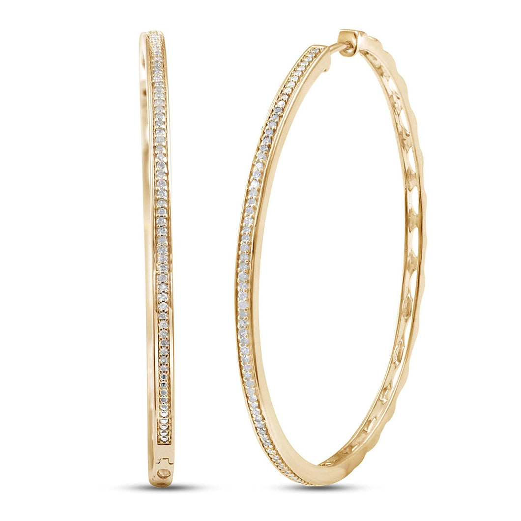 Jewelili Yellow Gold Over Sterling Silver With 1/4 CTTW Natural White Diamond Hoop Earrings
