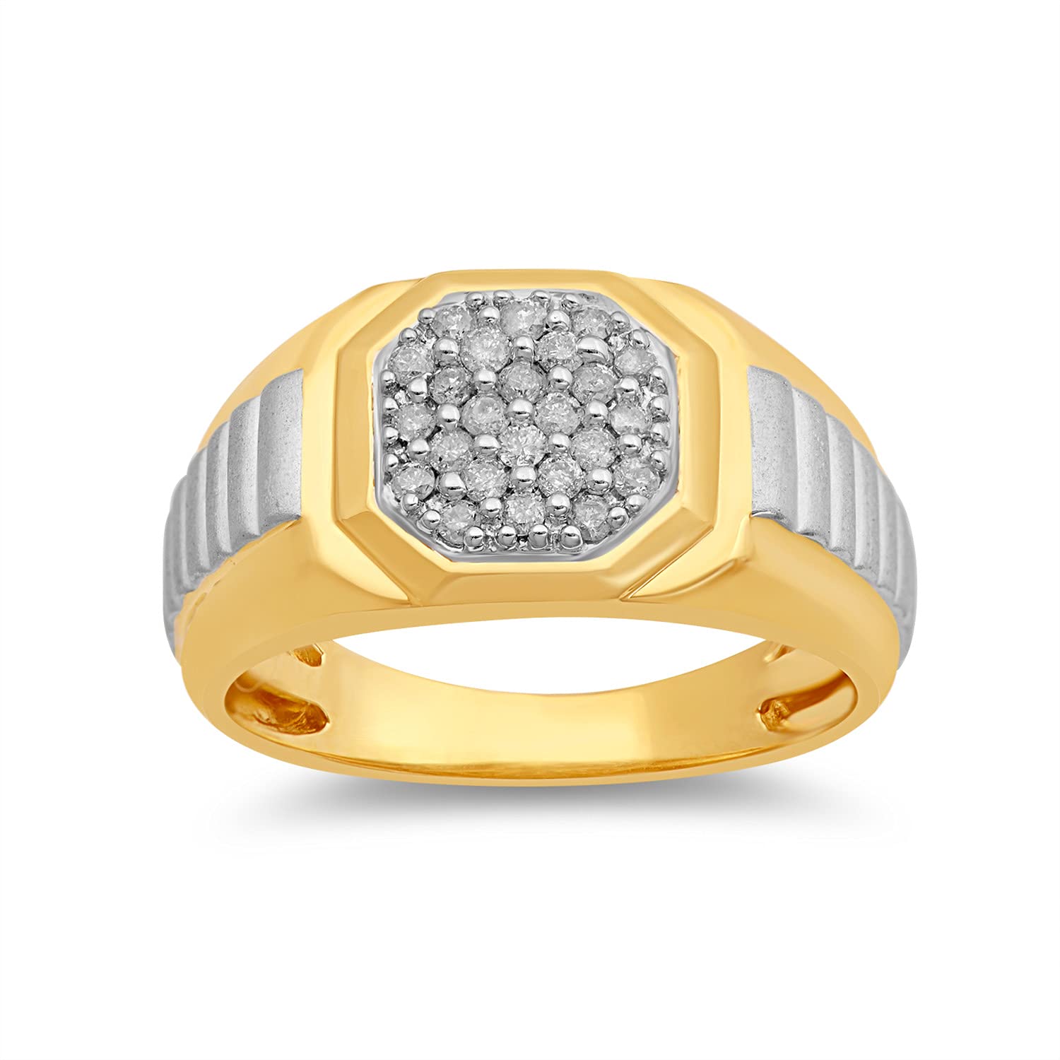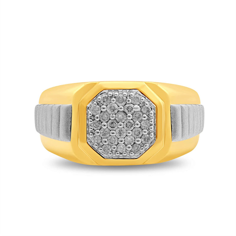 • Yellow Gold over Sterling Silver With 1/4 Cttw Natural White Round Diamond Men's Ring