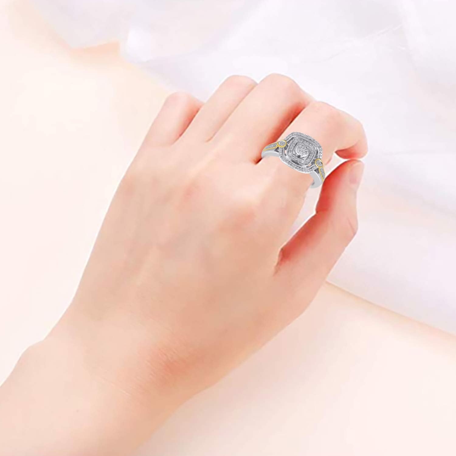 • Load image into Gallery viewer, Jewelili Yellow Gold Over Sterling Silver With 1/4 CTTW Natural White Round Diamonds Ring