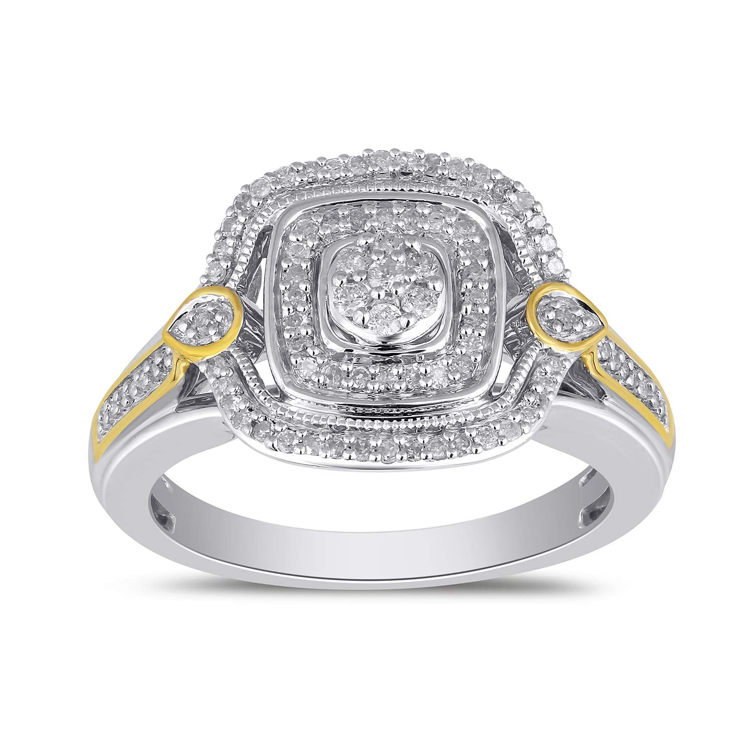 Jewelili Yellow Gold Over Sterling Silver With 1/4 CTTW Natural White Round Diamonds Ring