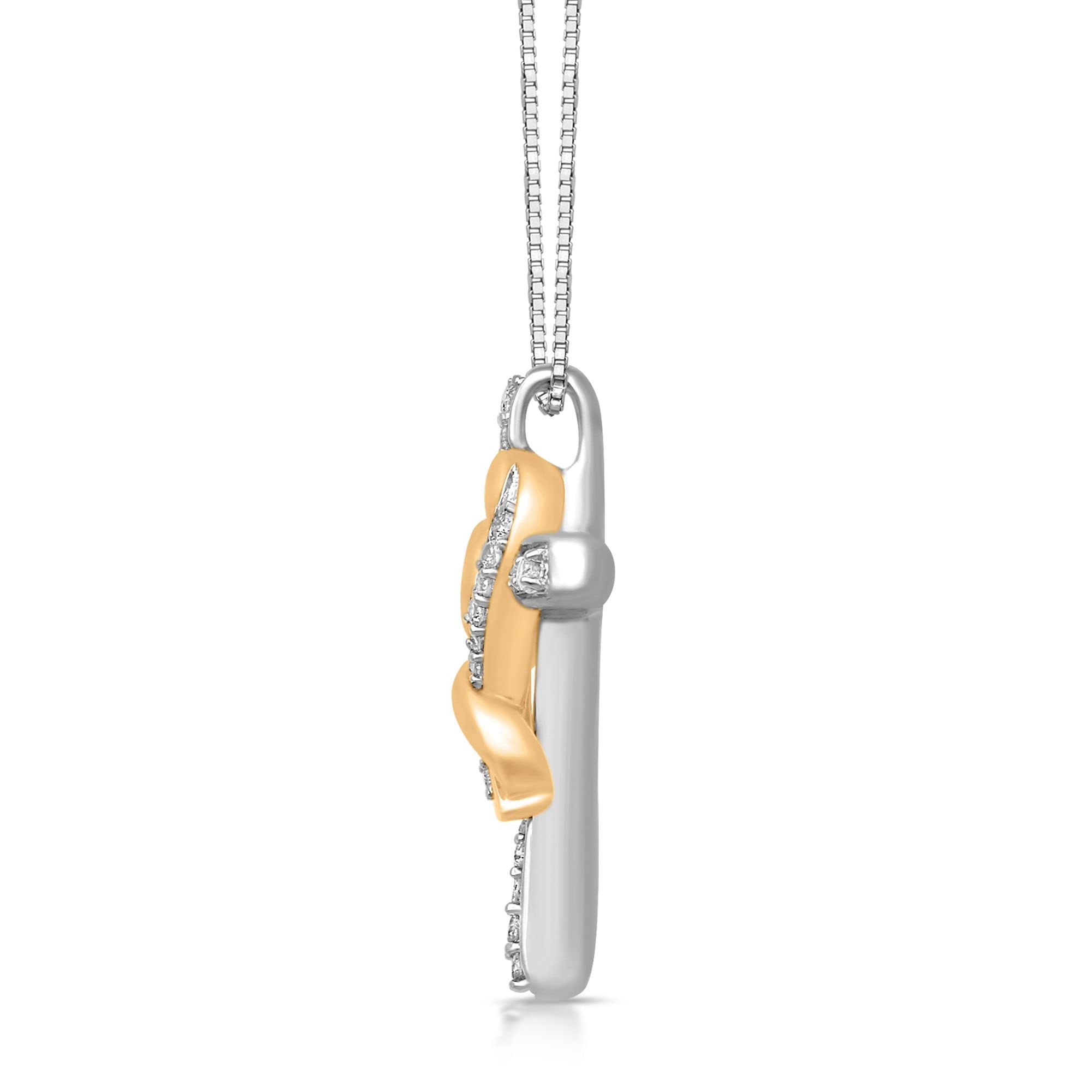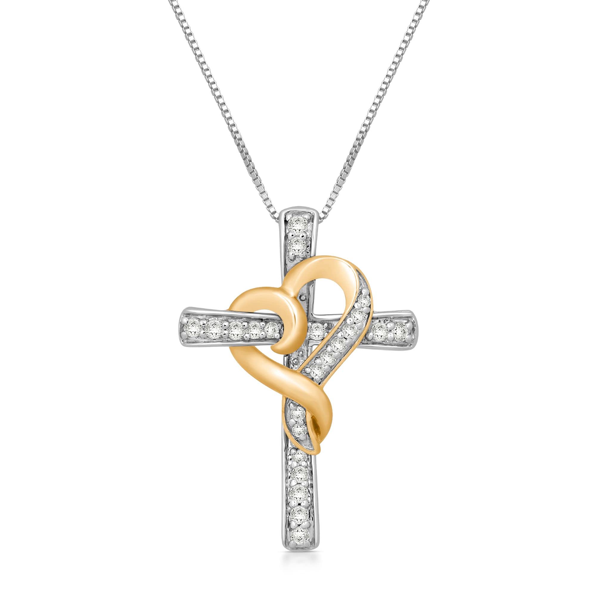Jewelili Yellow Gold Over Sterling Silver With 1/4 CTTW Natural White Round Diamonds Heart Cross Pendant Necklace