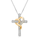 • Load image into Gallery viewer, Jewelili Heart Cross Pendant Necklace with Natural White Round Diamonds in Yellow Gold over Sterling Silver 1/4 CTTW View 1