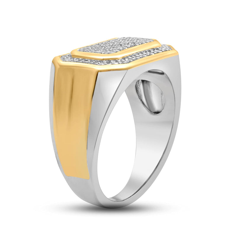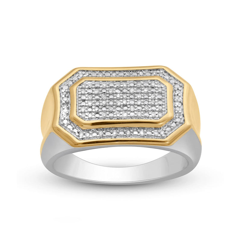 • Yellow Gold over Sterling Silver With 1/5 Cttw Natural White Round Diamond Men's Ring