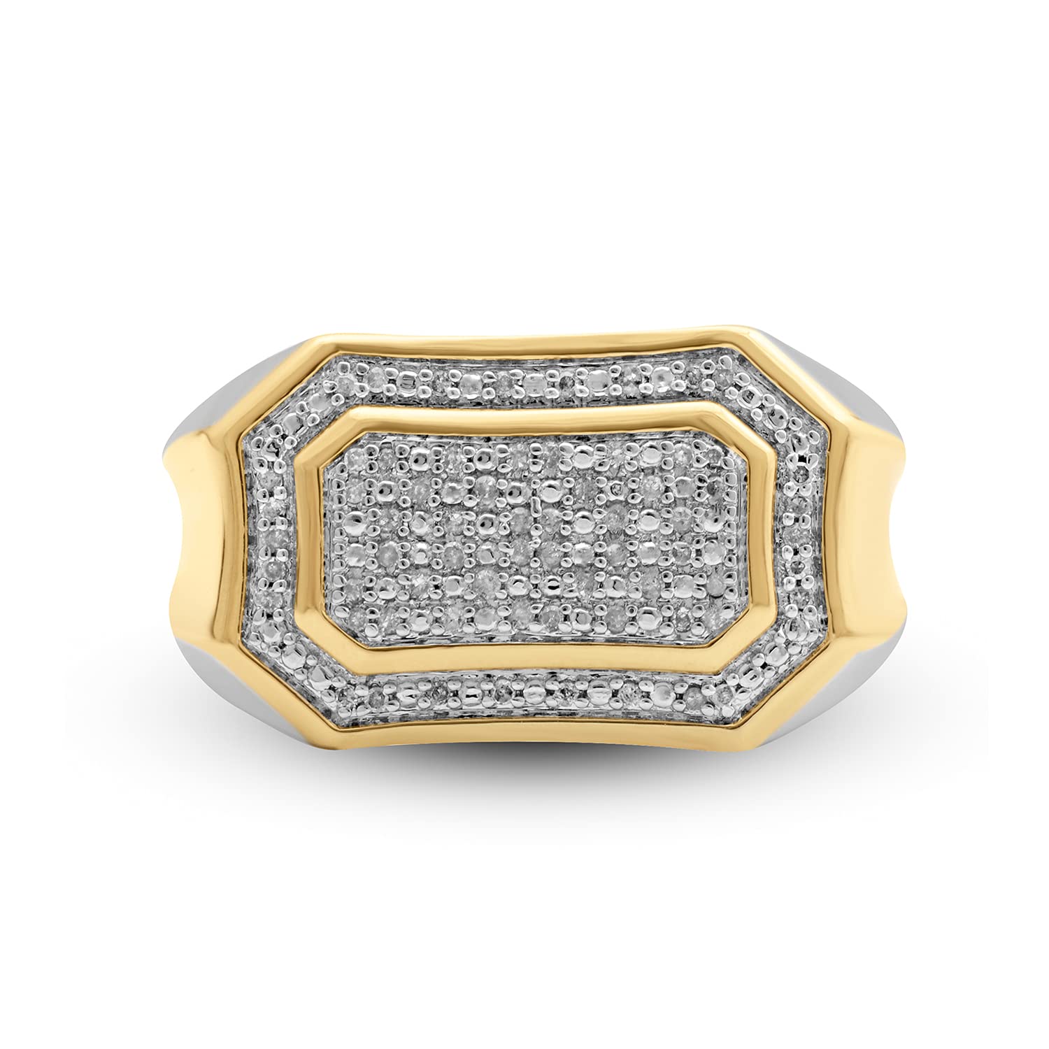 Jewelili Yellow Gold over Sterling Silver With 1/5 CTTW Natural White Round Diamonds Men's Ring