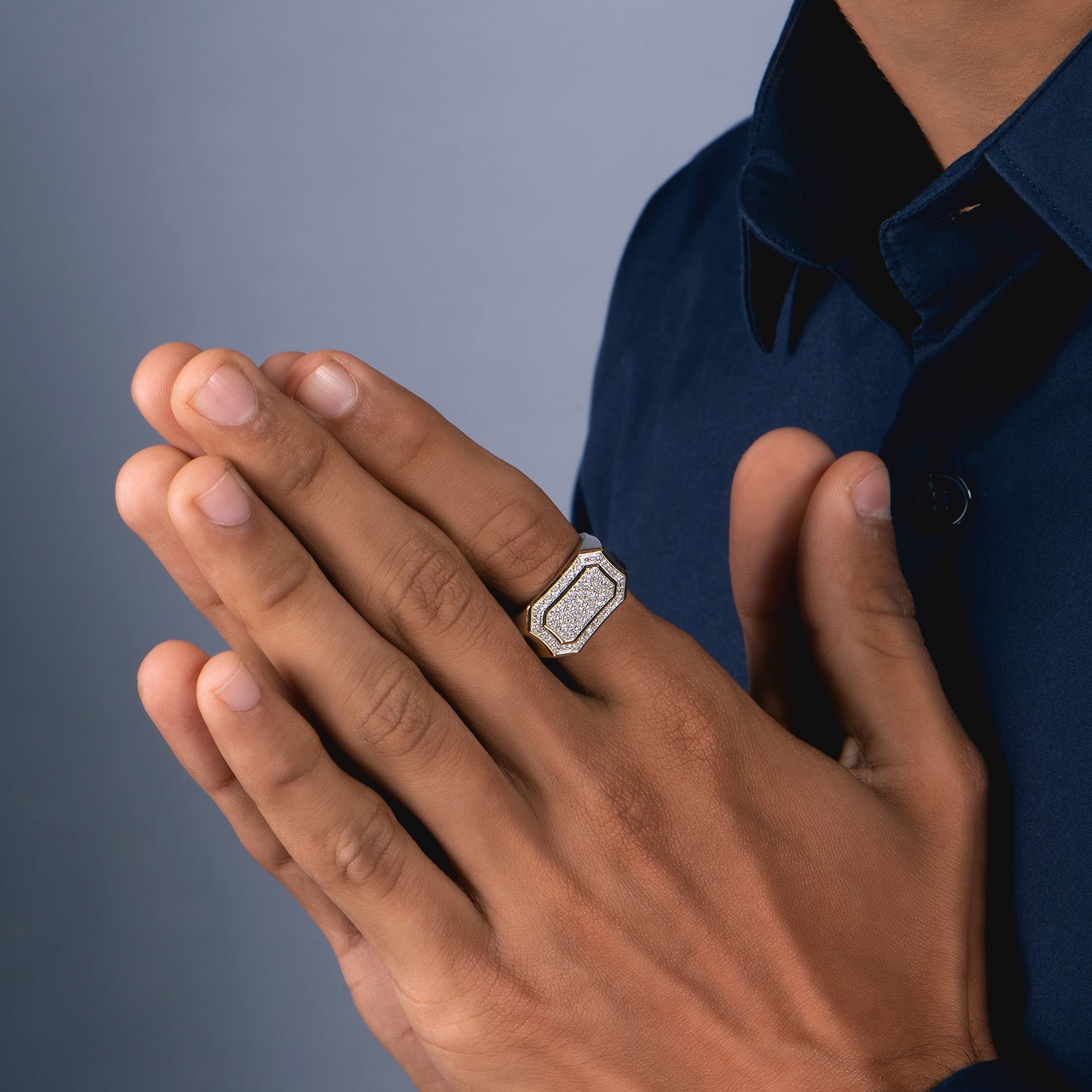 • Load and play video in Gallery viewer, Jewelili Yellow Gold over Sterling Silver With 1/5 CTTW Natural White Round Diamonds Men's Ring