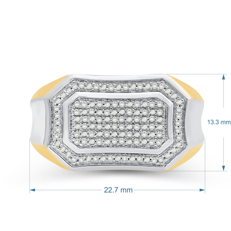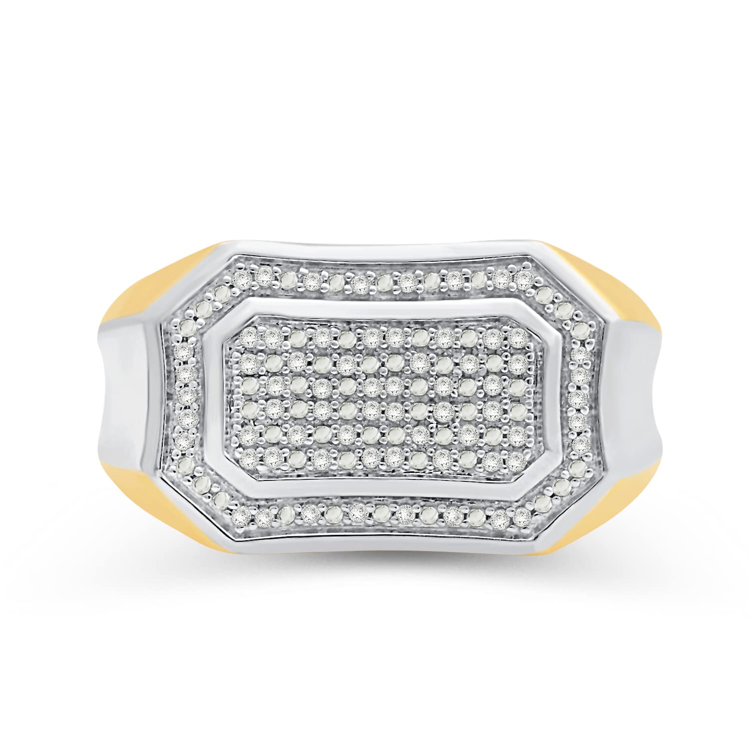 Jewelili Yellow Gold over Sterling Silver With 1/5 CTTW Natural White Round Diamonds Men's Ring