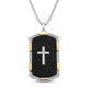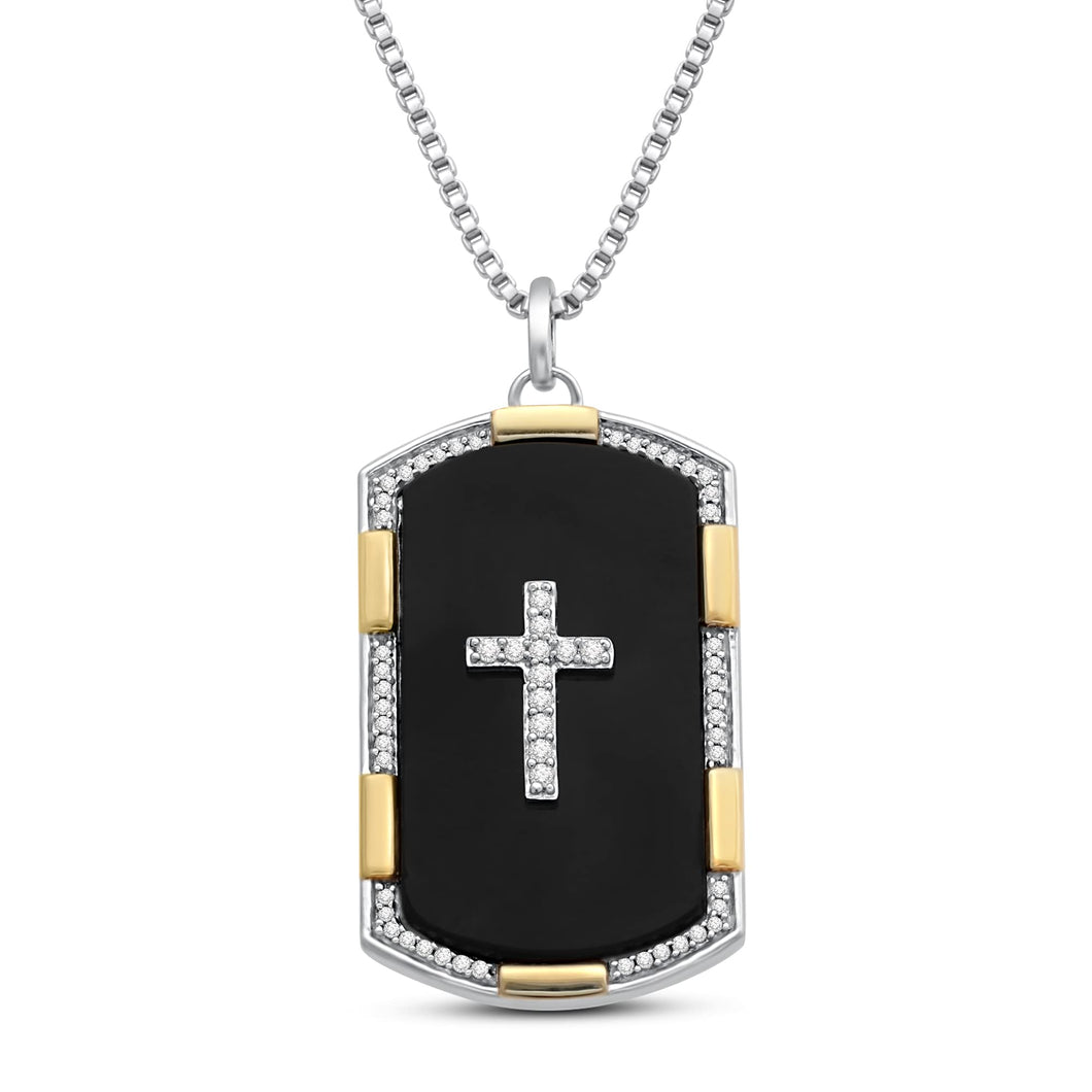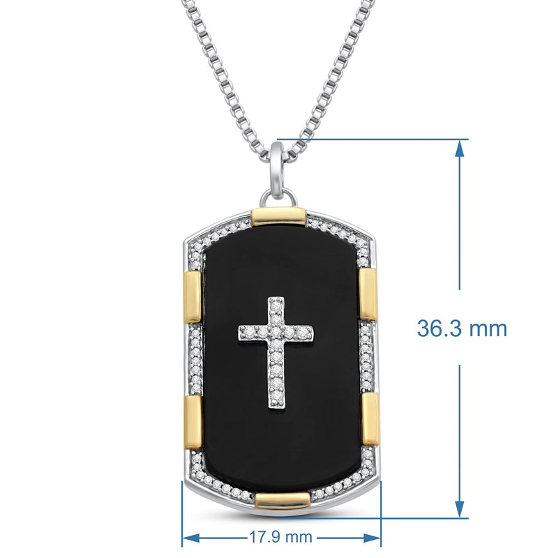 Jewelili Yellow Gold Over Sterling Silver With 27x15MM Special Cut Black Onyx and 1/5 CTTW Natural White Round Diamonds Men's Dog Tags Cross Pendant Necklace, 18" Box Chain