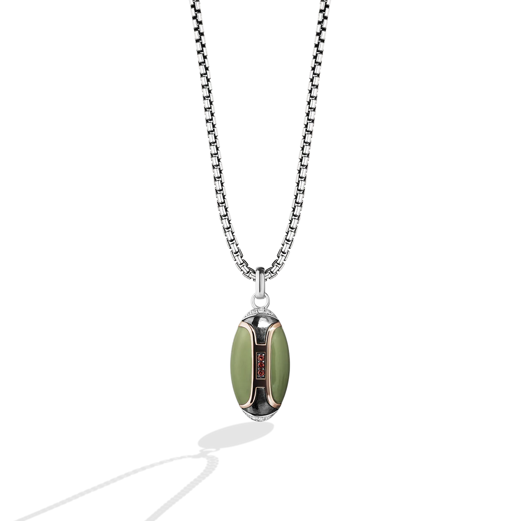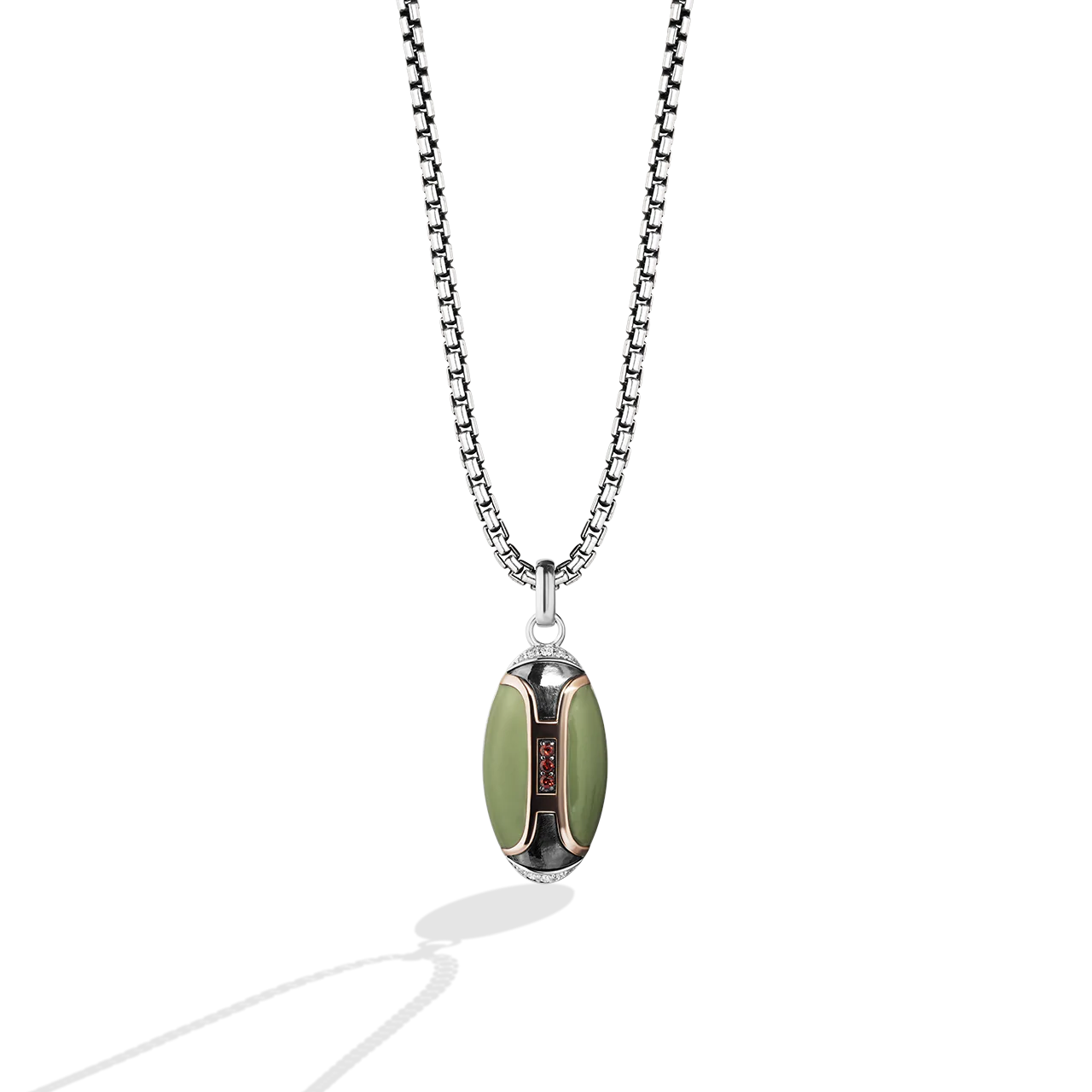 Make your way through the galaxy with this diamond and garnet pendant set in 14K Rose Gold over Sterling Silver with green enamel. Inspired by Boba Fett™, this pendant is designed to mirror the legendary bounty hunter's armor.