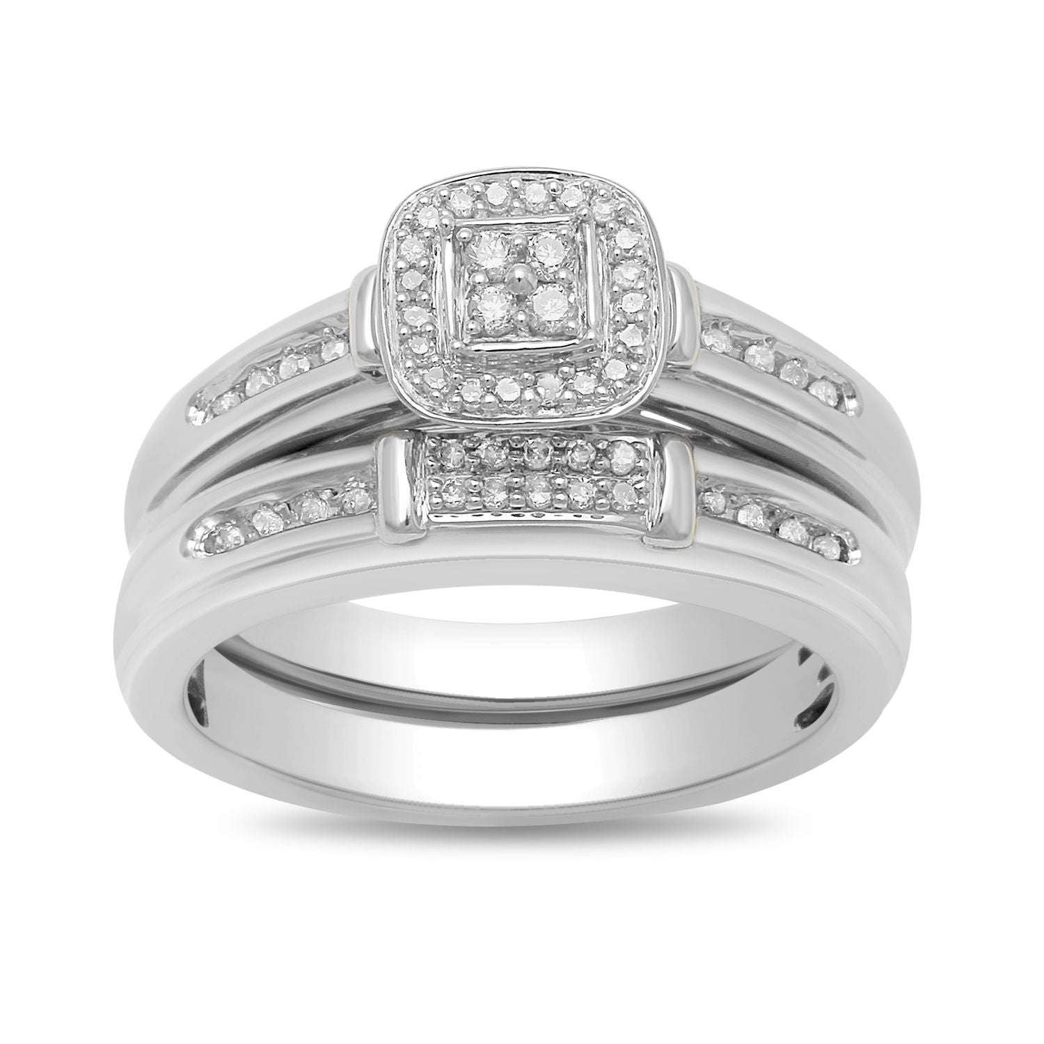 • Sterling Silver with 1/5 Cttw Natural White Round Diamond Bridal Set