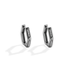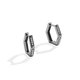 Inspired by the TIE Fighter, the most iconic vehicle in the Galactic Republic. This diamond and sterling silver with black rhodium hoop earring features a geometric shape inspired by the wings of the vehicle.